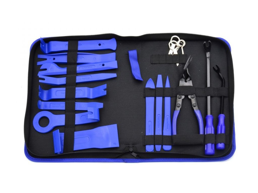 Sada obsahuje také klíče k demontáži autorádia a kleště na čalounické spony.