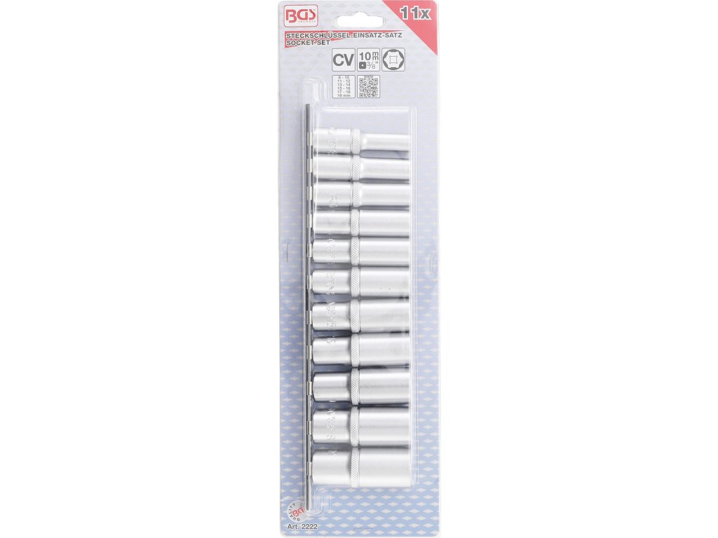 Sada 3/8” hlavic nástrčných 8-19 mm, prodloužené, sada 11 ks - BGS 2222