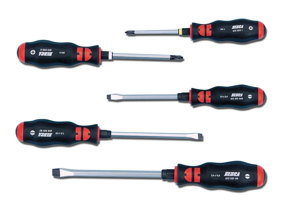 Šroubováky ploché a křížové s jednodílným šestihranným dříkem/adaptérem na klíč, sada 5 kusů – Würth 061393225