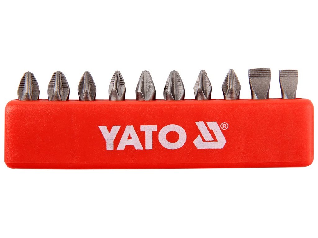 Kvalitní bity Yato se systémem Non-Slip, kdy je hrot bitu vybaven žebrováním zabraňujícím sklouznutí šroubu a zvyšujícím přenos kroutícího momentu.