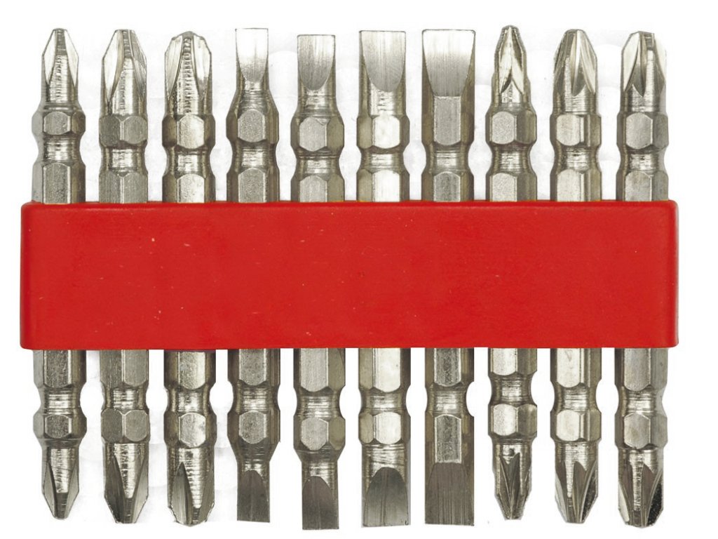 Sada oboustranných bitů. Jsou vyrobeny z chrom-vanadiové oceli CrV.