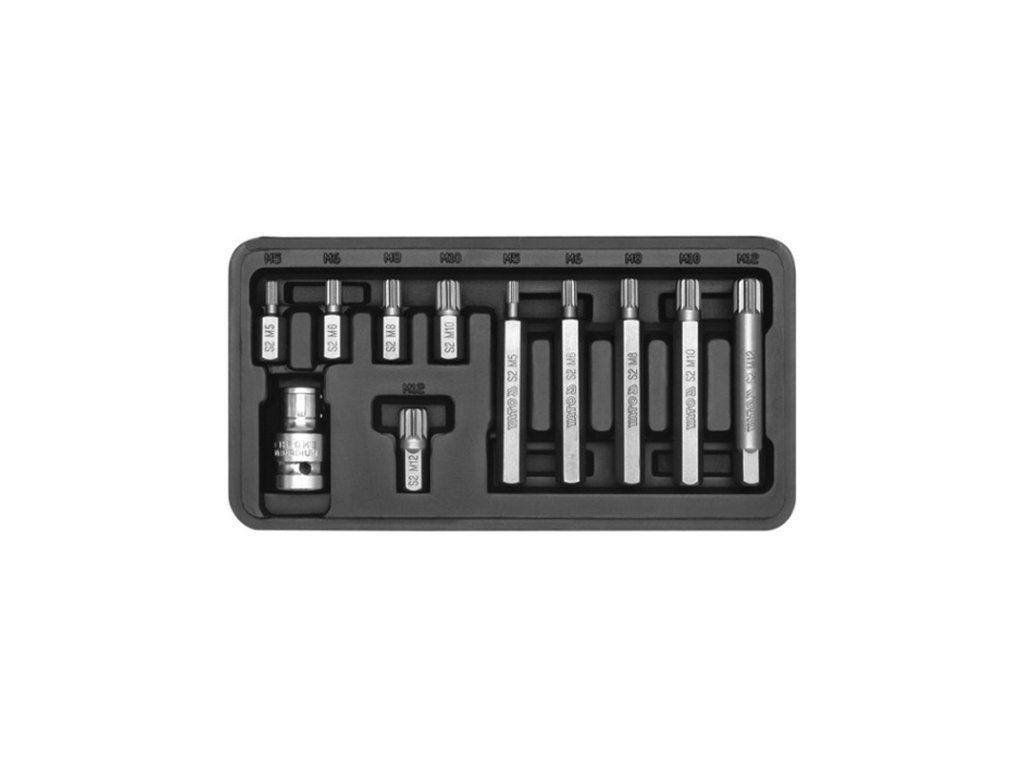 Tato sada je vhodná pro profesionály, především pro mechaniky. Bity jsou spolu s adaptérem uzpůsobeny pro práci s ráčnou 1/2". V sadě se nachází bity vícezubé M5, M6, M8, M10, M12 dvou délek (30 a 75 mm) a ty jsou vzhledně a prakticky uspořádány kovovém kufříku.