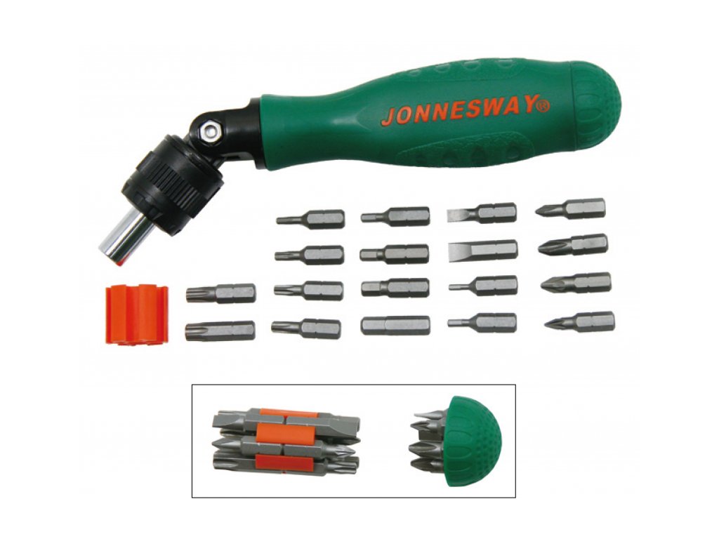 19dílná sada bitů s ráčnovým šroubovákem s ohebným dříkem, dodáváno v plastové kazetě – JONNESWAY DR0219S