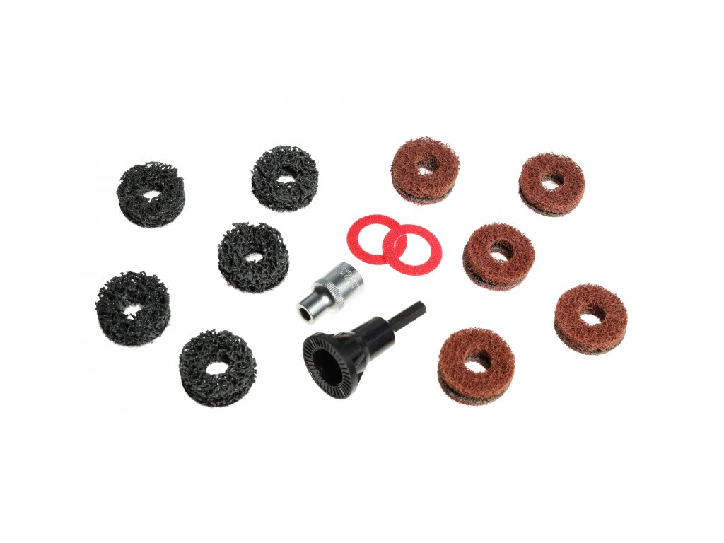 Sada brusných kotoučů pro rychlé a snadné čištění náboje kol a brzdových kotoučů, adaptér 1/2", adaptér do vrtačky - QUATROS QS14040.
