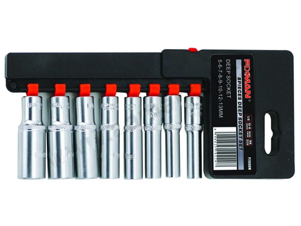 Sada dlouhých nástrčných 6-hranných hlavic 1/4" 8ks - FIXMAN