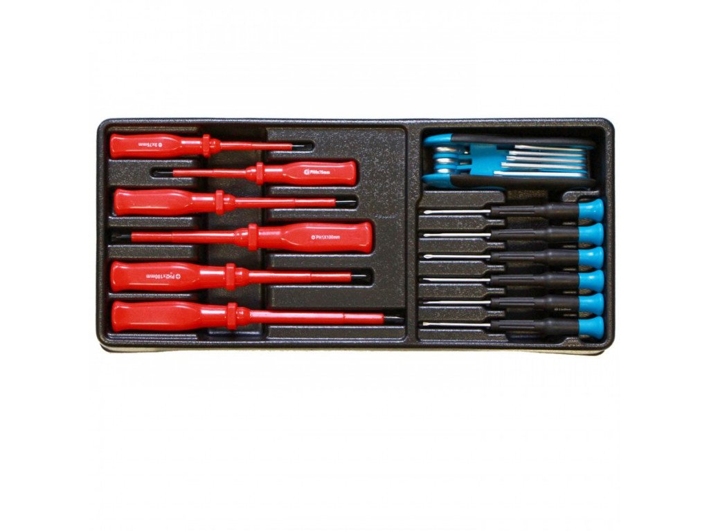 Sada elektrikářských a hodinářských šroubováků ve vložce do dílenského vozíku, 13 dílů - VV013SS01