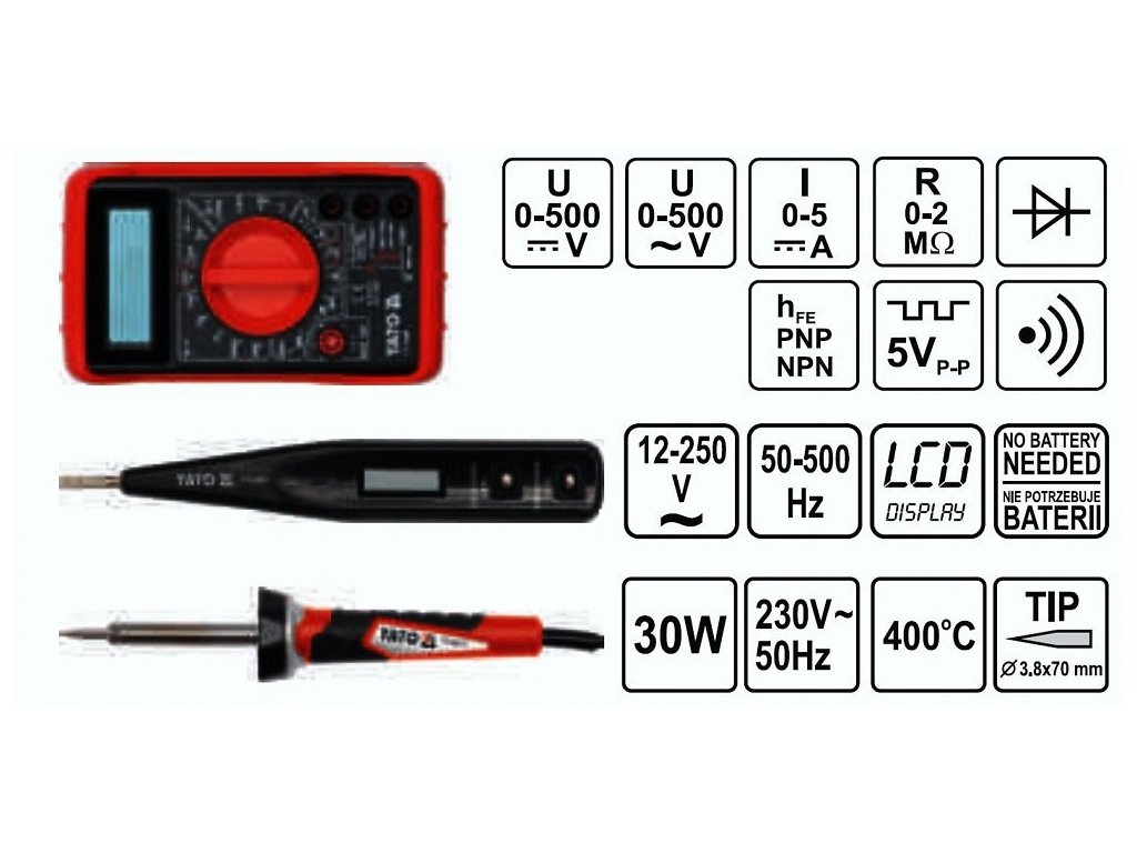 - Izolovaný šroubovák: 4x75, 5.5x125, PH1x80, PH2x100mm (1000V)