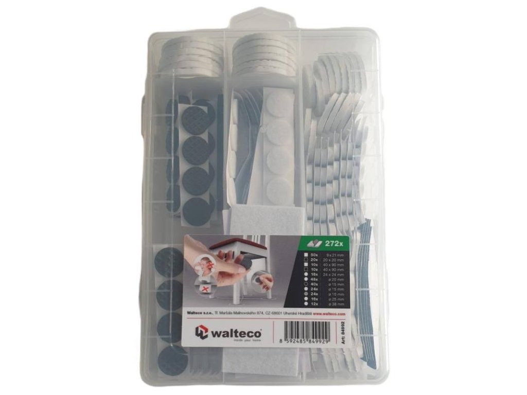 - Filcové podložky: 40x90 mm bílá - 10x, 40x90 mm černá - 10x, O 16 mm šedá - 24x, O 20 mm bílá - 48x, O 15 mm bílá - 24x