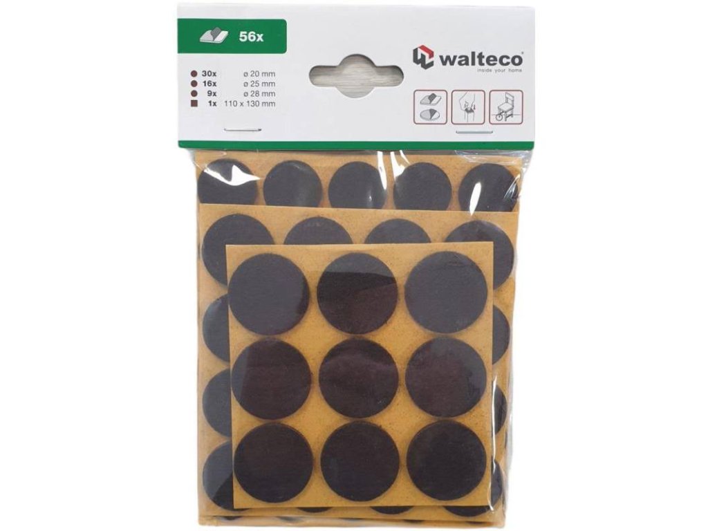 Filcové podložky: O 19 mm - 30x, O 25 mm - 16x, O 28 mm - 9x, 110x130 mm - 1x