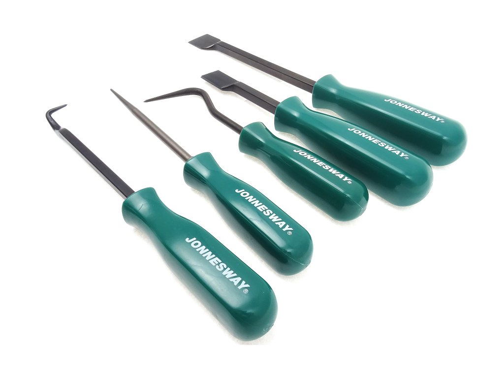 Sadá háčků, hrotů, škrabek (šábrů), šprháků k odstraňování těsnění, o-kroužků, gufer; 5dílná souprava – JONNESWAY AI030007