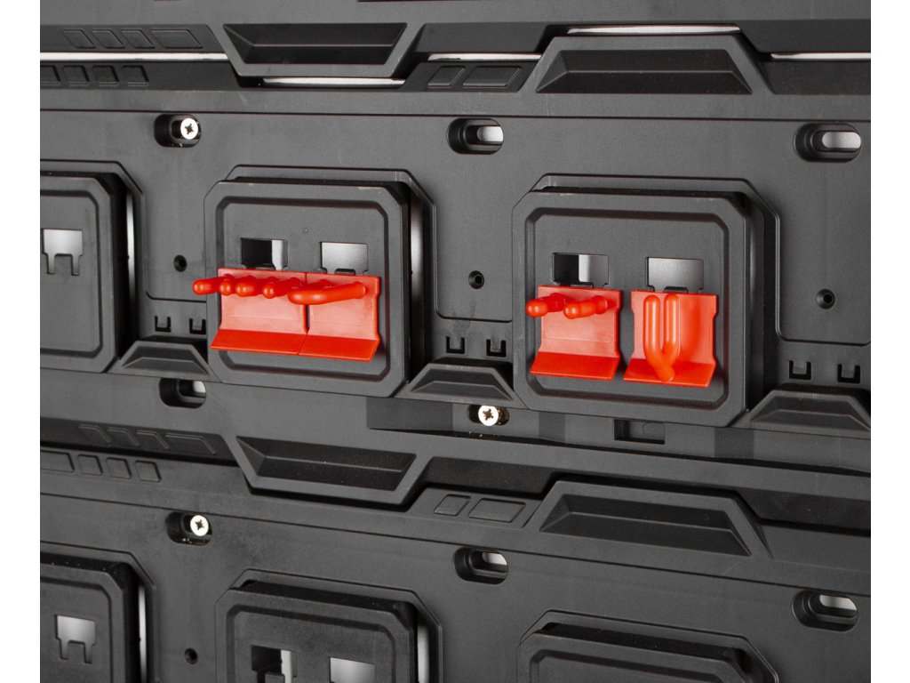 - Flexibilní organizace: Různé typy háčků pro širokou škálu nářadí a příslušenství.
