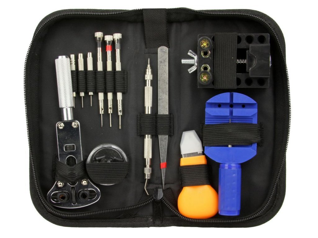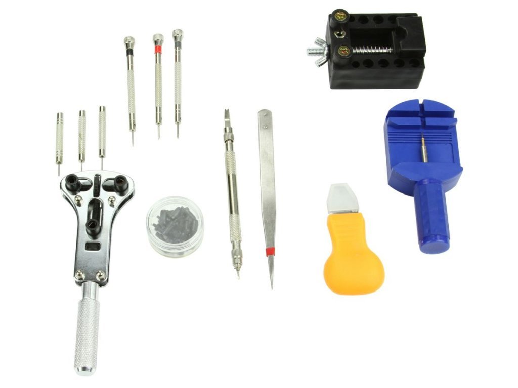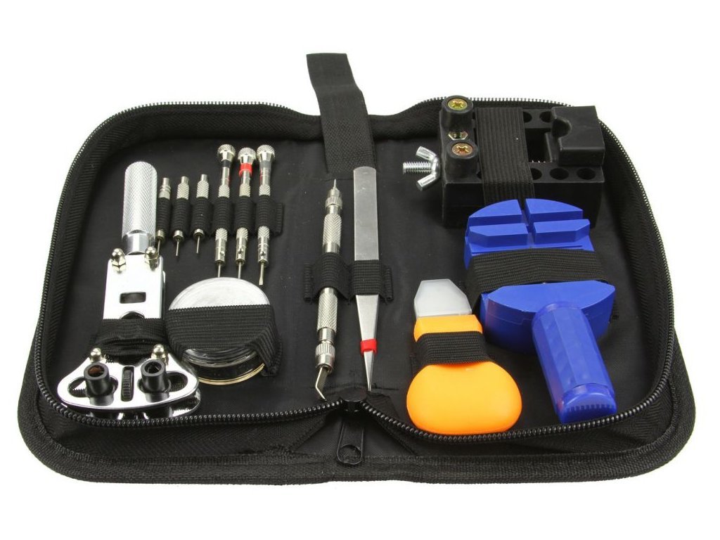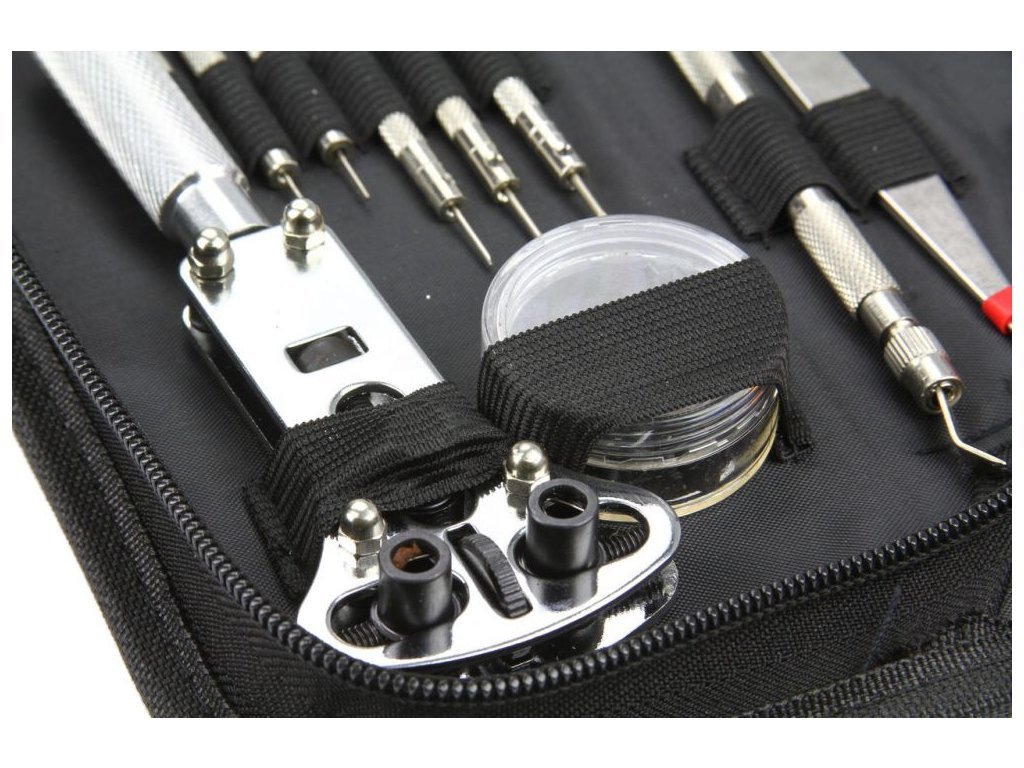 Praktická sada nářadí obsahuje základní nástroje pro opravu hodinek a zkracování řemínků, opravy šperků, bižuterie, Tato sada obsahuje velké množství nástrojů se širokým spektrem využití. Sada poslouží jak pro amatérské domácí opravy, tak i v profesionální hodinářské dílně.