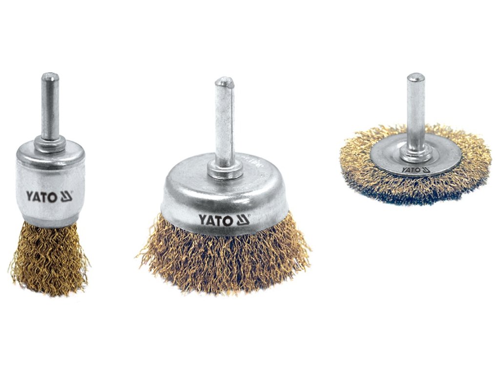 Sada kartáčů drátěných s nástavcem do vrtačky 3 ks pomosazený drát