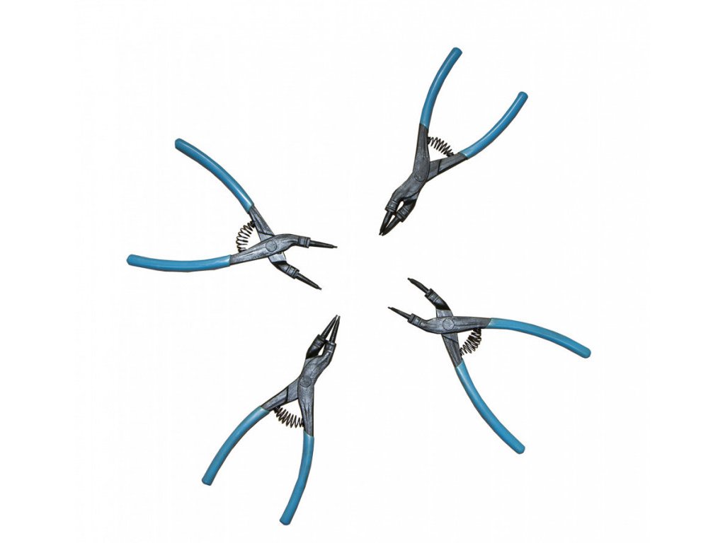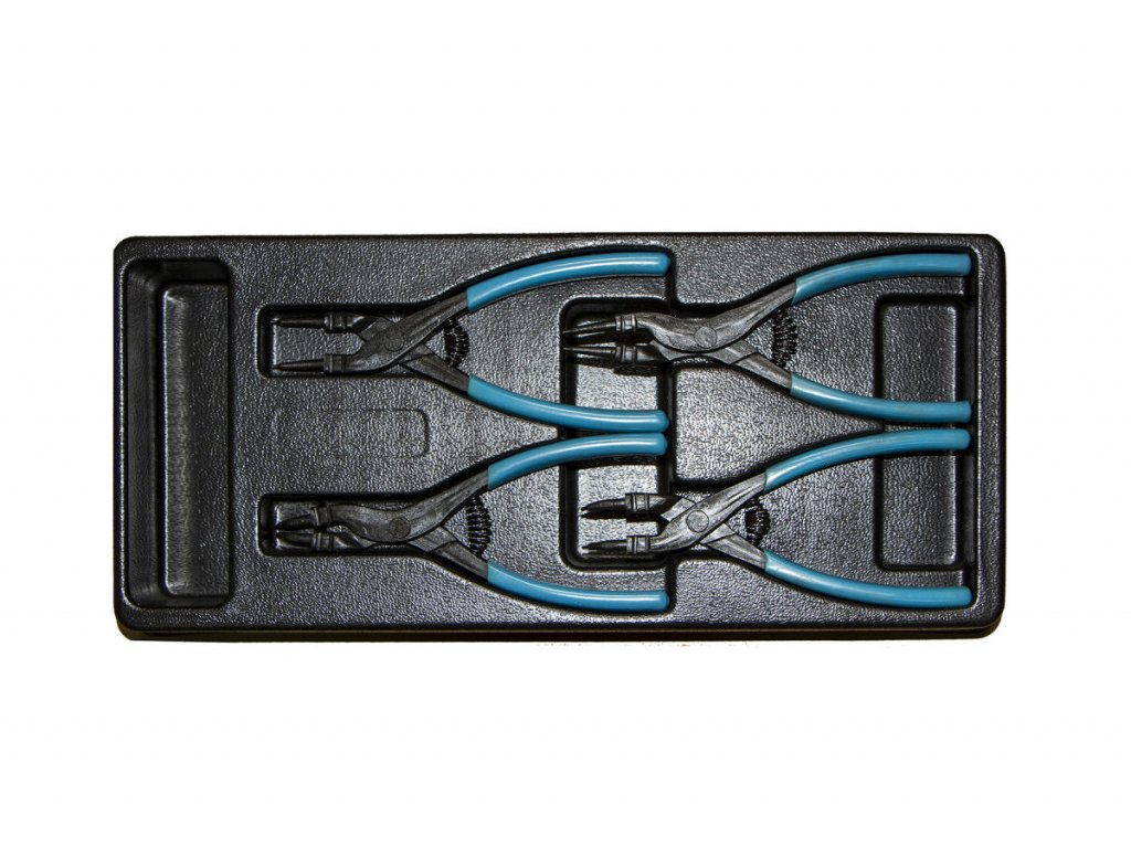 Sada 4 ks kleští na pojistné kroužky ve výplni do dílenského vozíku obsahuje: