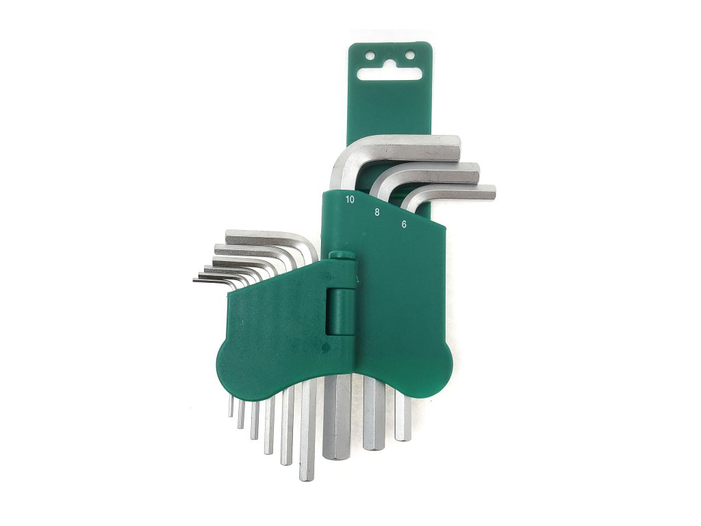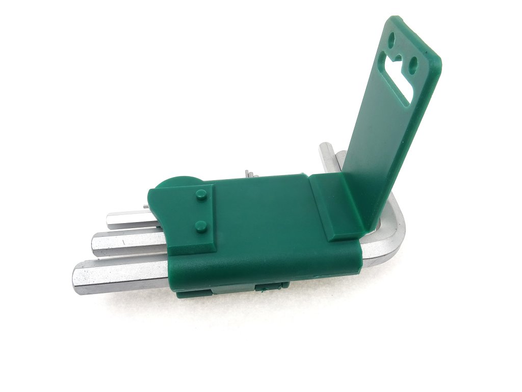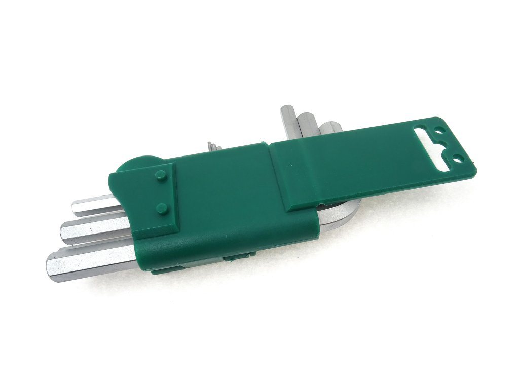 Souprava devíti krátkých klíčů IMBUS v praktickém plastovém organizéru, který lze pro snadný přístup ke klíčům rozevřít, zavěsit na zeď (např. na dílenskou stěnu), nebo zacvaknout za opasek. Klíče tak mohou být vždy po ruce při práci.