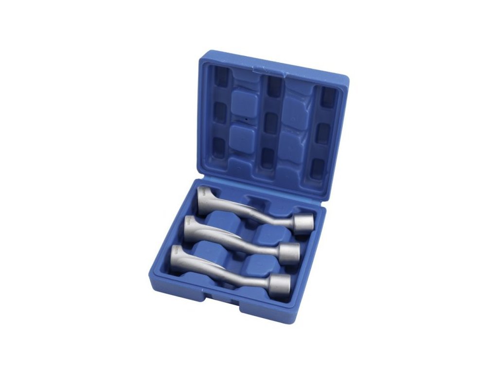 Speciální otevřené, vyhnuté klíče na matice vstřikovacího vedení (14-19 mm) vznětových (dieselových) motorů – QUATROS QS20802. Sada tří nástrčných hlavic s výřezem na montáž a demontáž vstřikovacího vedení. Souprava obsahuje tři klíče o velikostech 14, 17 a 19 mm s 1/2” vodícím čtyřhranem pro uchycení na ráčnu. Baleno v praktické plastové kazetě. Barevné provedení se může lišit od fotografií podle aktuální dodávky.