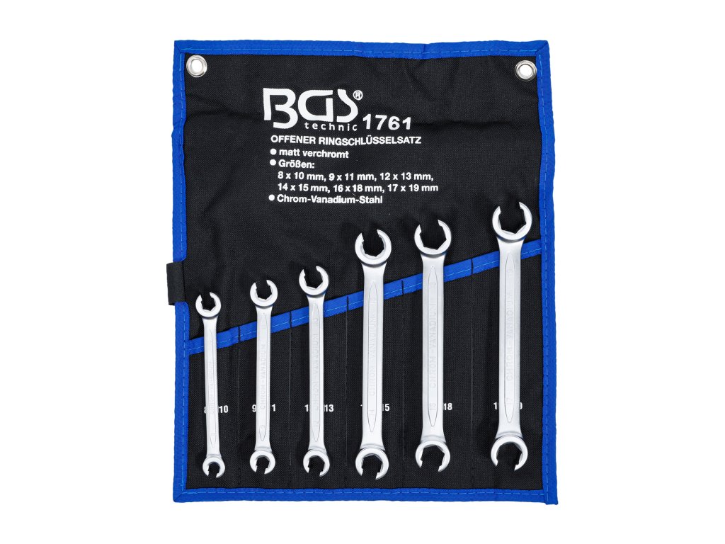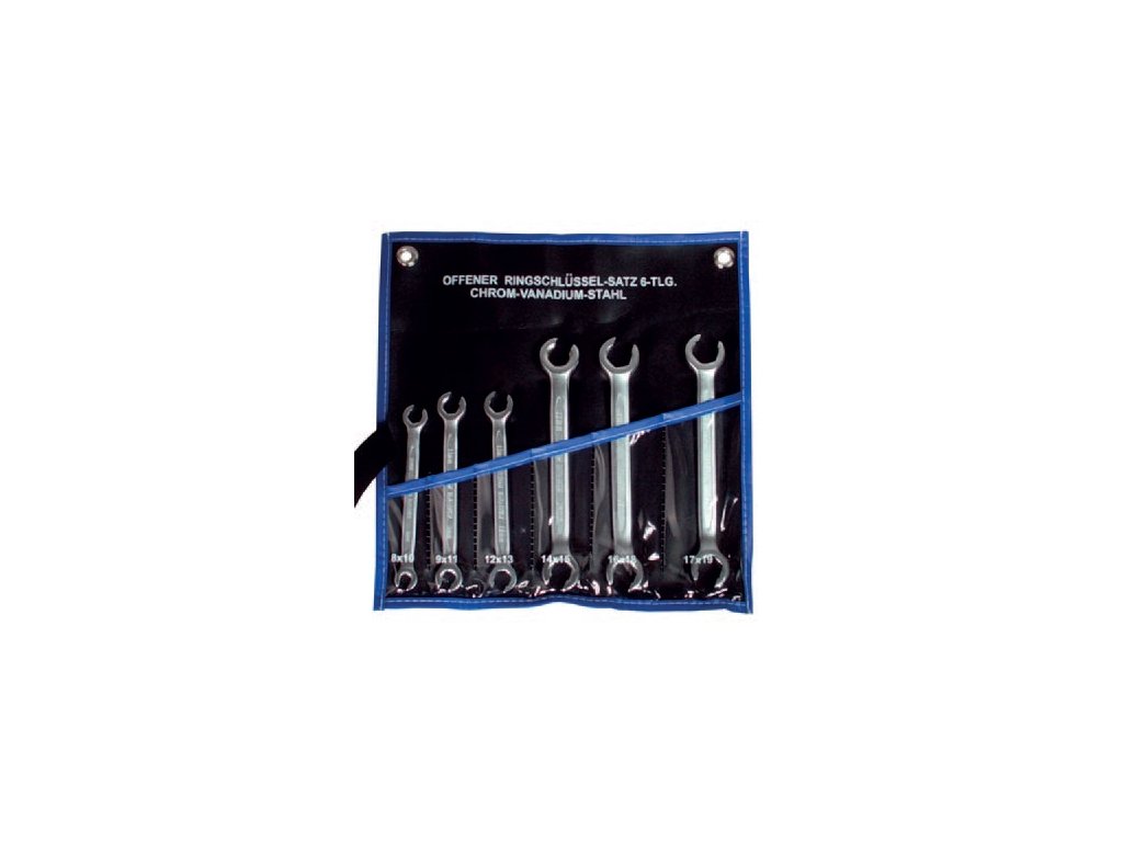 Chrom vanadium, matný chrom. Rozměry: 8 x 10; 9 x 11; 12 x 13; 14 x 15; 16 x 18; 17 x 19 mm. V rolovací tašce. |