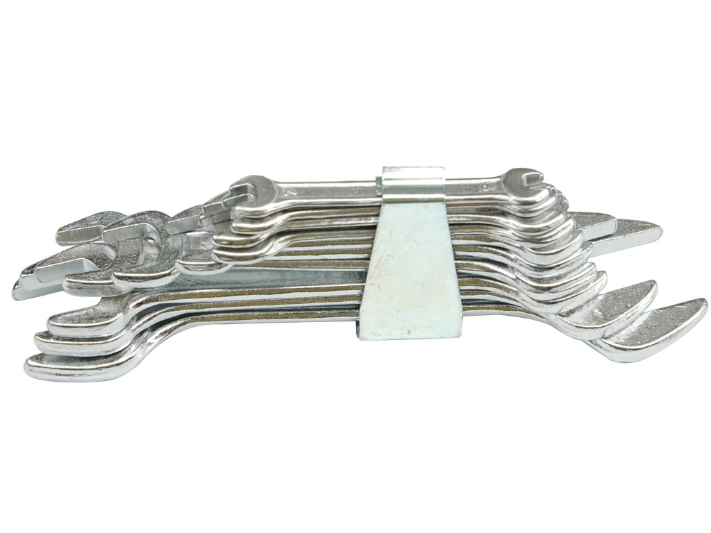 Sada klíčů s dvojitým otevřeným koncem 6 - 32 mm. Vyrobeno z uhlíkové oceli. Klíčové hlavy sklopené o 15 stupňů.