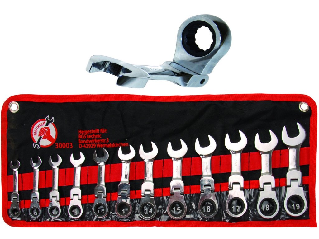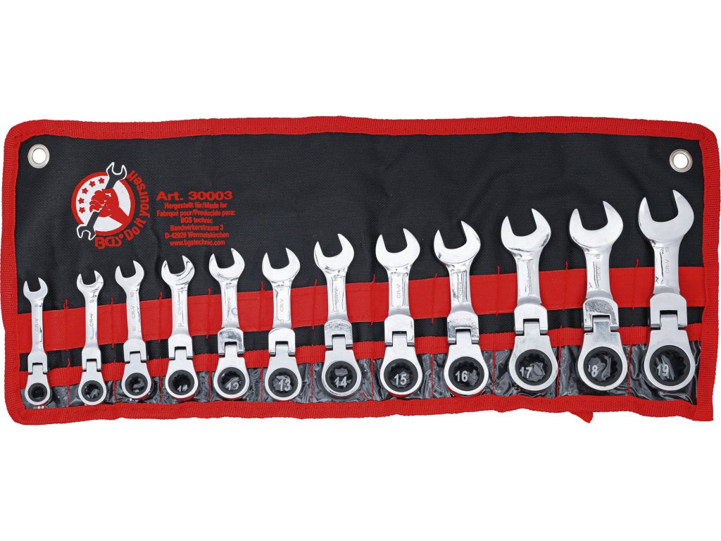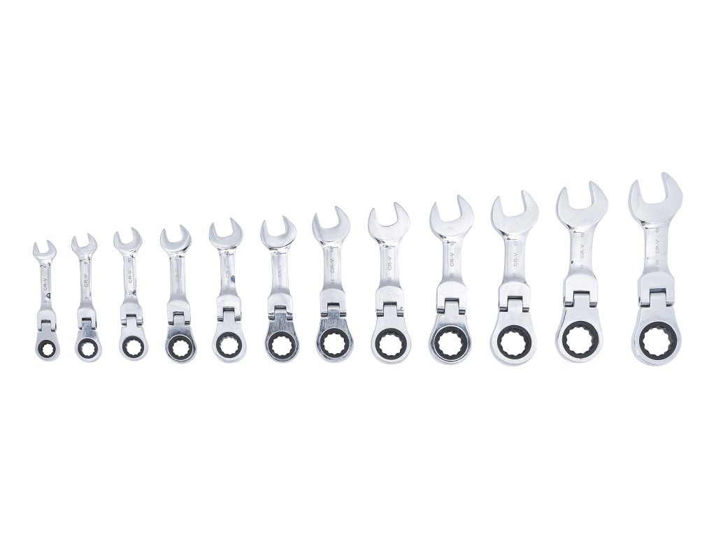 Sada krátkých ráčnových kloubových očkoplochých klíčů 8-19 mm, 12ks