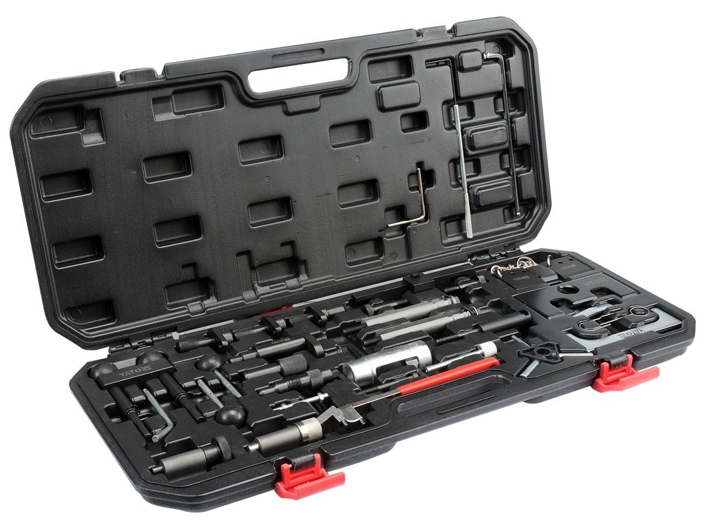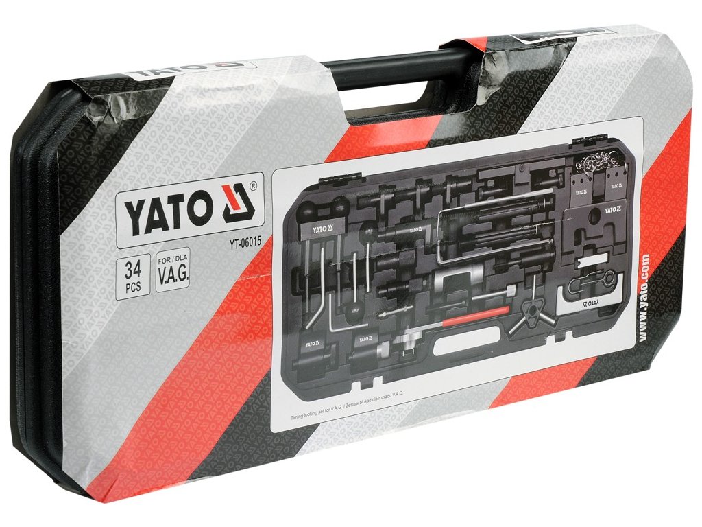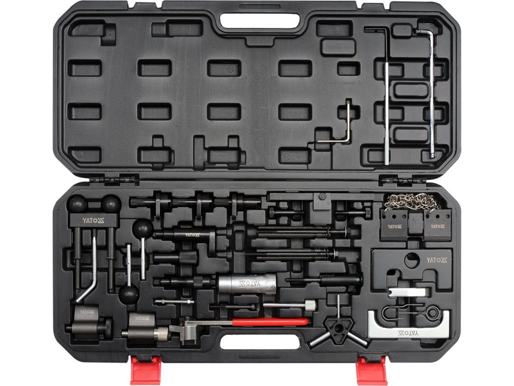 Profesionální 34 dílná sada přípravků pro de/montáž rozvodových kol automobilů skupiny VAG.