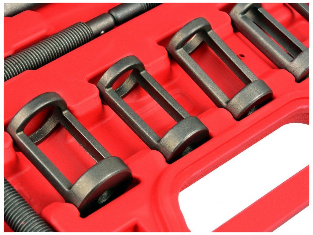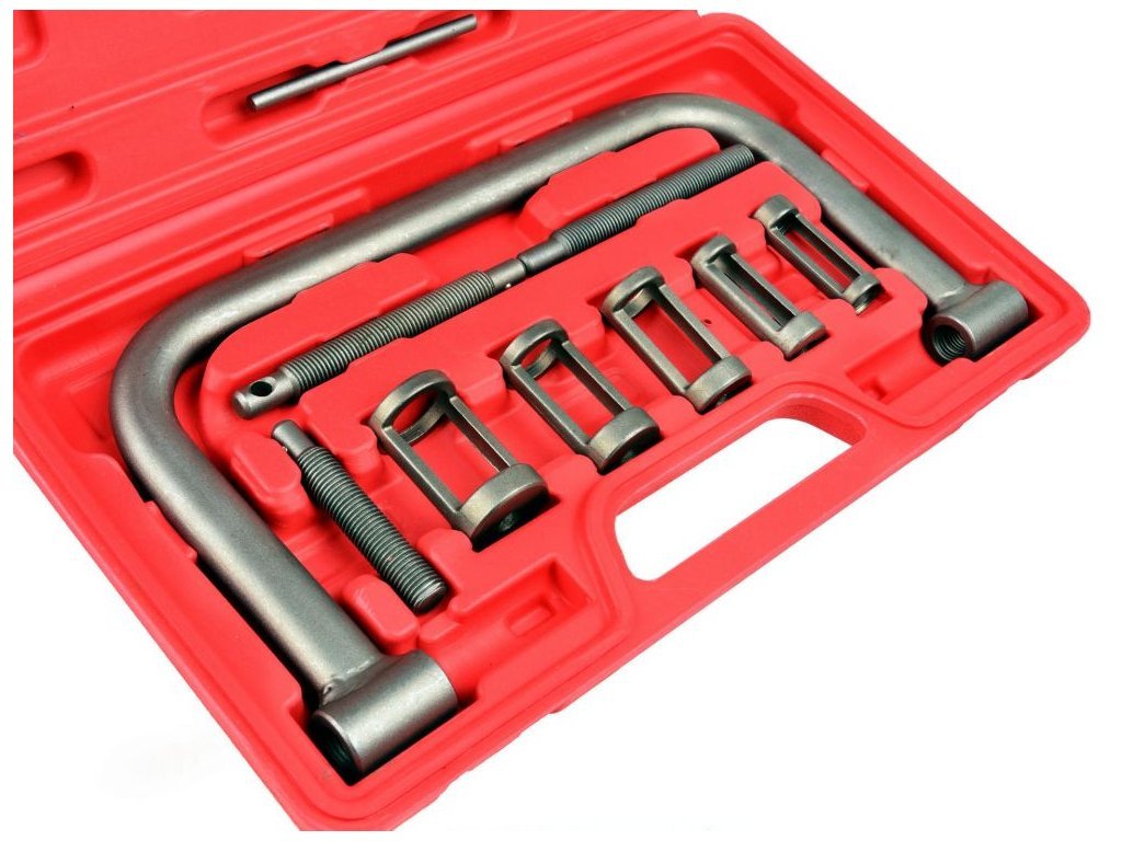 Sada na demontáž ventilů. Pro práci s naftovými i benzínovými motory. Sada obsahuje pět speciálních hrotů přizpůsobených pro ventily různých průměrů. Zařízení umožňuje výměnu ventilů, dotažení ventilů, výměnu pružin ventilů a výměnu těsnění ventilů.