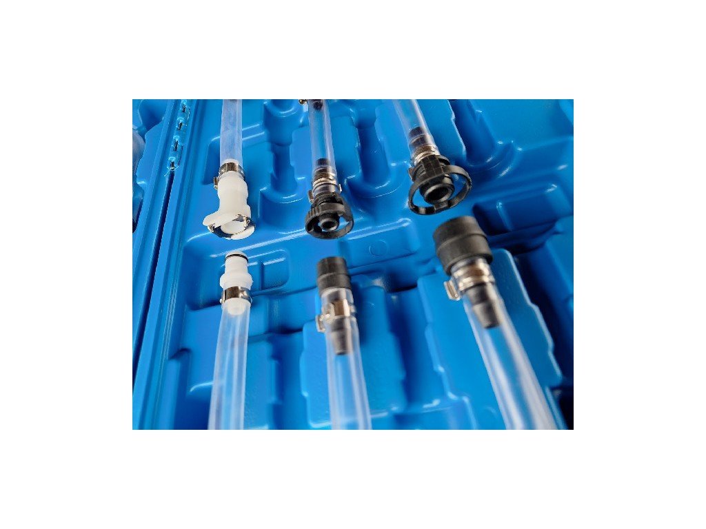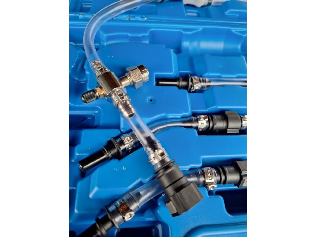 Praktická sada sestávající z gumového balónku – pumpy a různými typy rychlospojek pro celou řadu vozidel, např. Ford, Renault, Fiat, vozy koncernu PSA (Peugeot, Citroen, Opel aj.) a další.