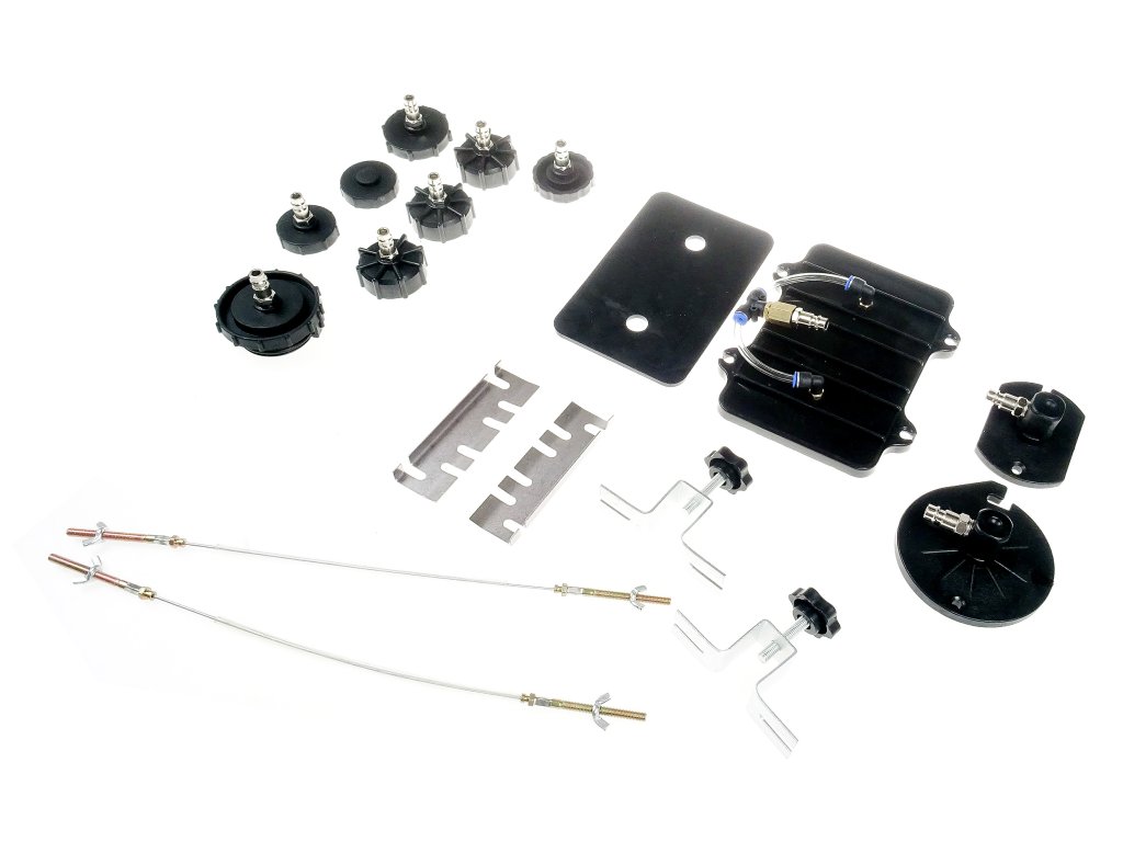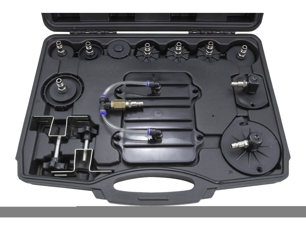 • plastový kufřík s adaptéry pro připojení plnící lahve na hrdlo nádržky s brzdovou kapalinou, 11 ks (speciální a univerzální redukce)
