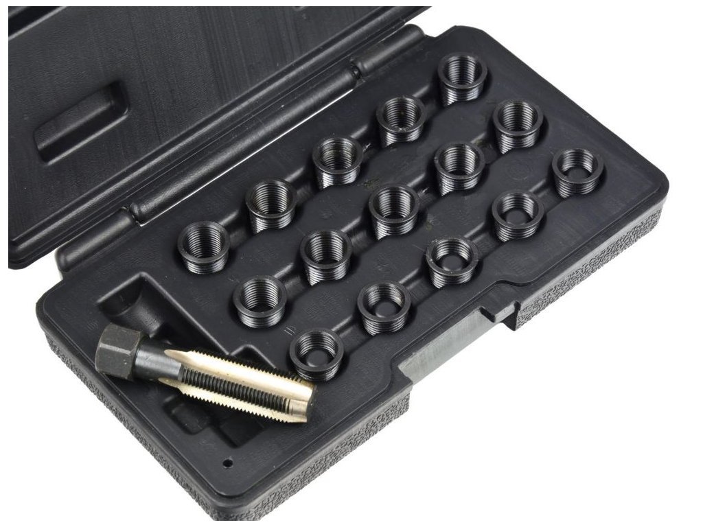 Sada vám umožňuje opravit poškozené závity zapalovací svíčky se závitem M14 x 1,25. Vhodné pro opravu závitů v automobilech, motocyklech, zahradní technice se spalovacími motory, apod. Vložka se šroubuje do motorové hlavy pomocí zapalovací svíčky.