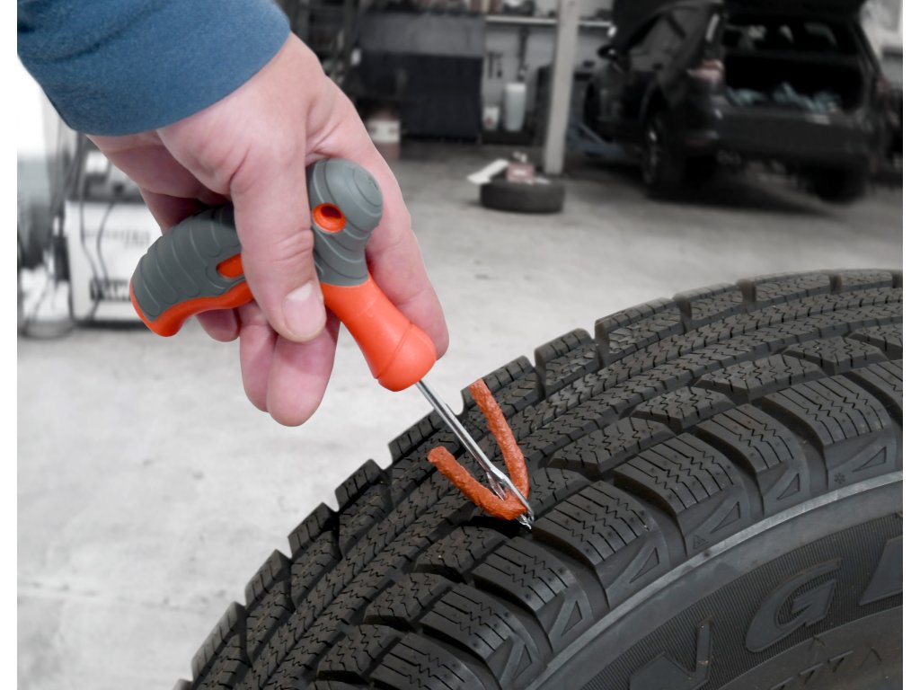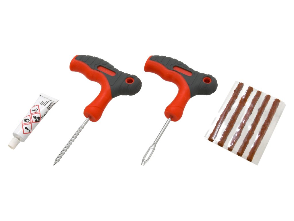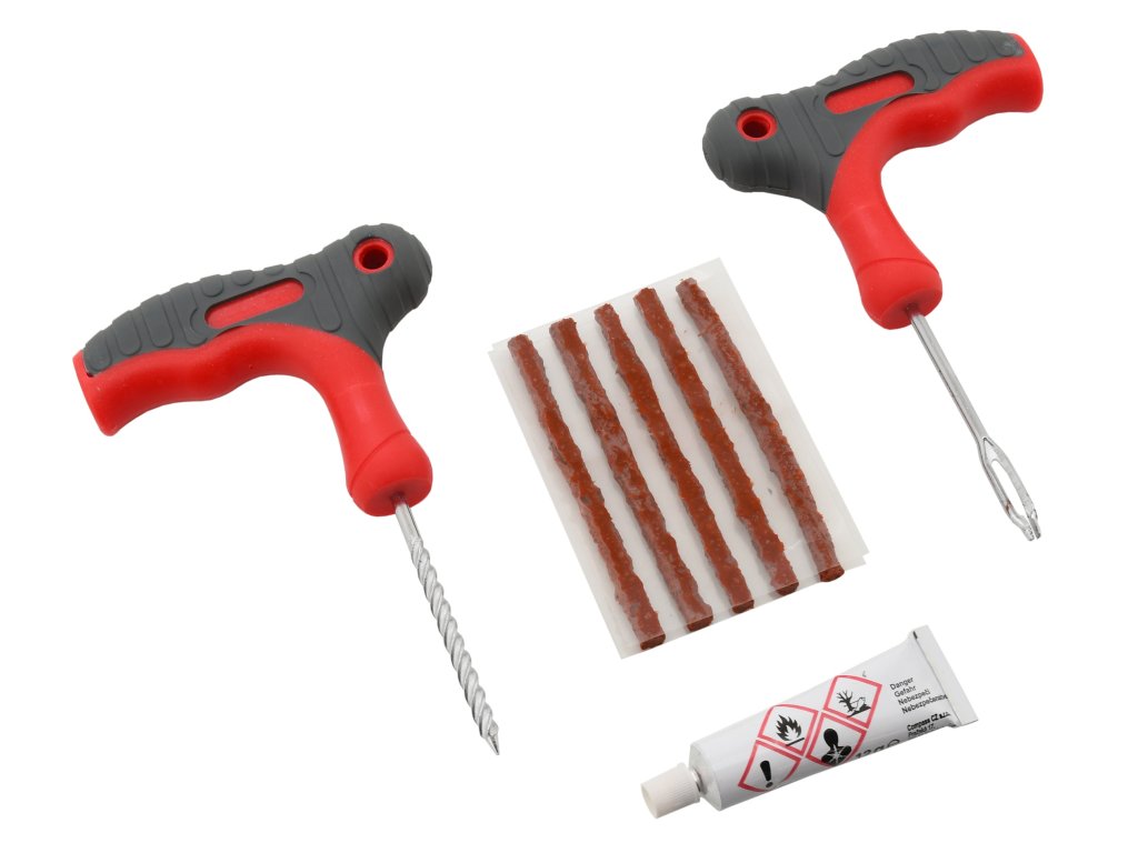 Ergonomická sada pro rychlé opravy bezdušových pneumatik, bez nutnosti demontáže pláště z disku.