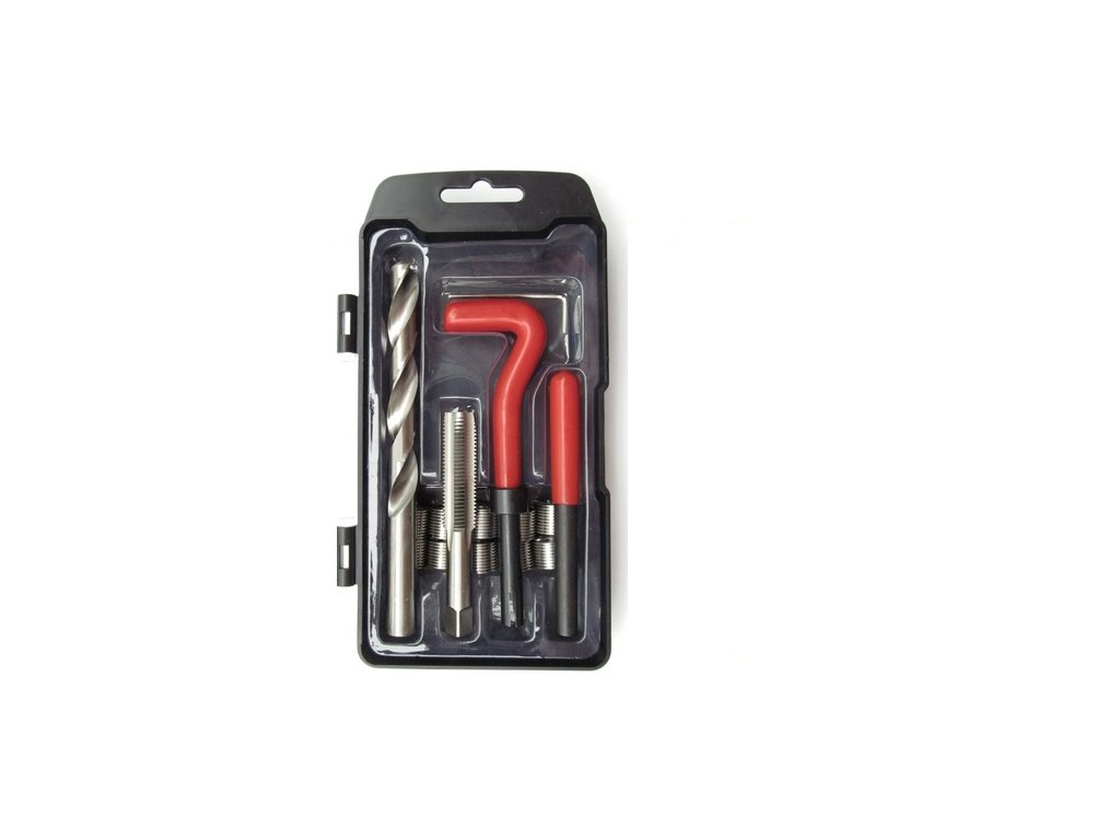 Praktická souprava pro snadnou opravu poškozených závitů M10×1,25. Využití najde všude tam, kde nelze vyřezat nový větší závit – opravený závit má stejnou velikost, jako ten původní. Díky tomu, že závitová vložka je z oceli lze sadu využít také pro zpevnění (vyztužení) závitů v jinak měkčích materiálech, jako je hliník nebo některé slitiny.