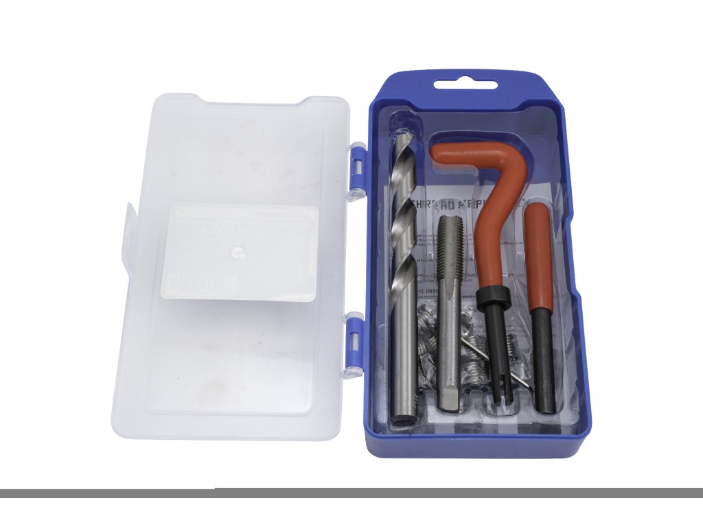 Praktická souprava pro snadnou opravu poškozených závitů M12×1,25. Využití najde všude tam, kde nelze vyřezat nový větší závit – opravený závit má stejnou velikost, jako ten původní. Díky tomu, že závitová vložka je z oceli lze sadu využít také pro zpevnění (vyztužení) závitů v jinak měkčích materiálech, jako je hliník nebo některé slitiny.