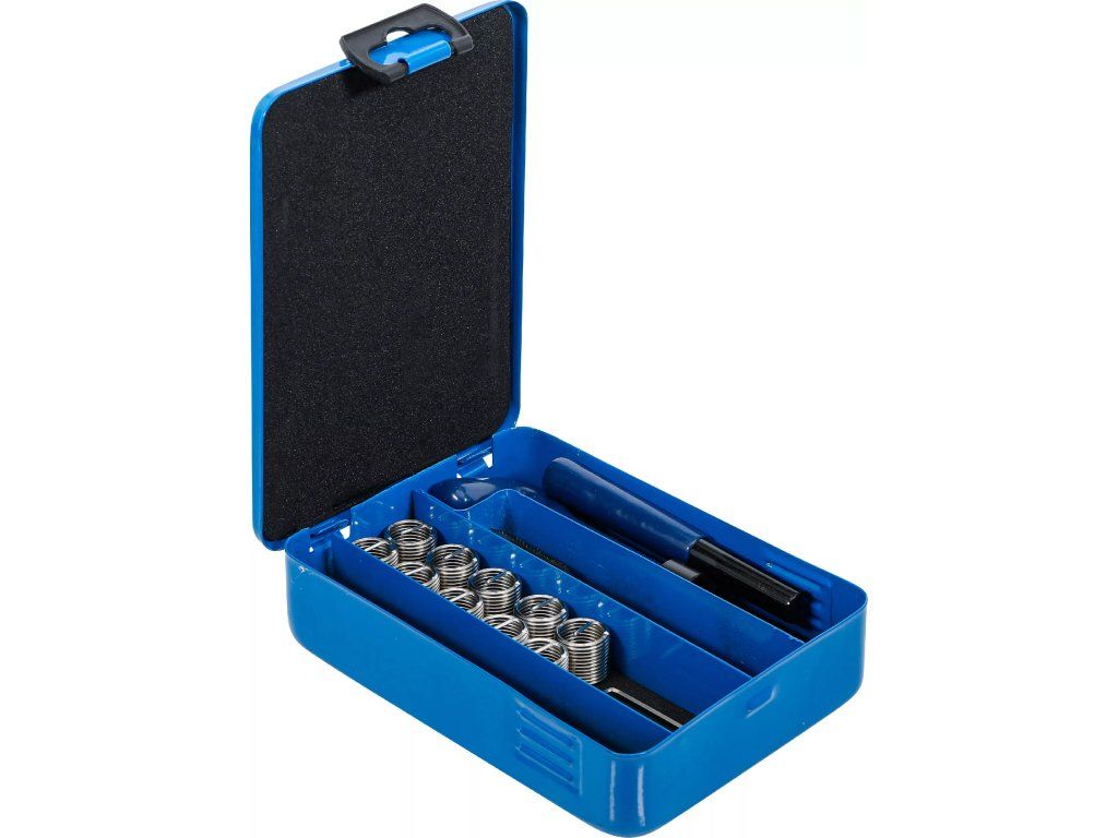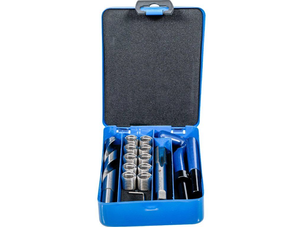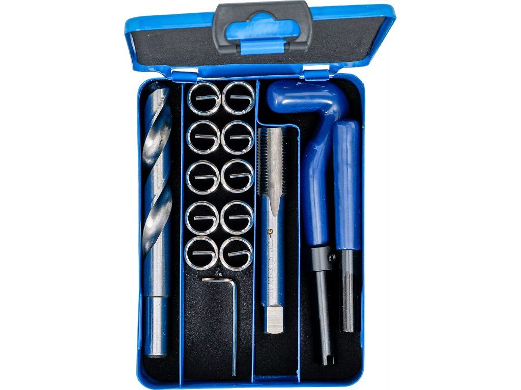Sada je určena k opravám poškozených vnitřních závitů v kovových materiálech, zejména v automobilových a strojírenských aplikacích.