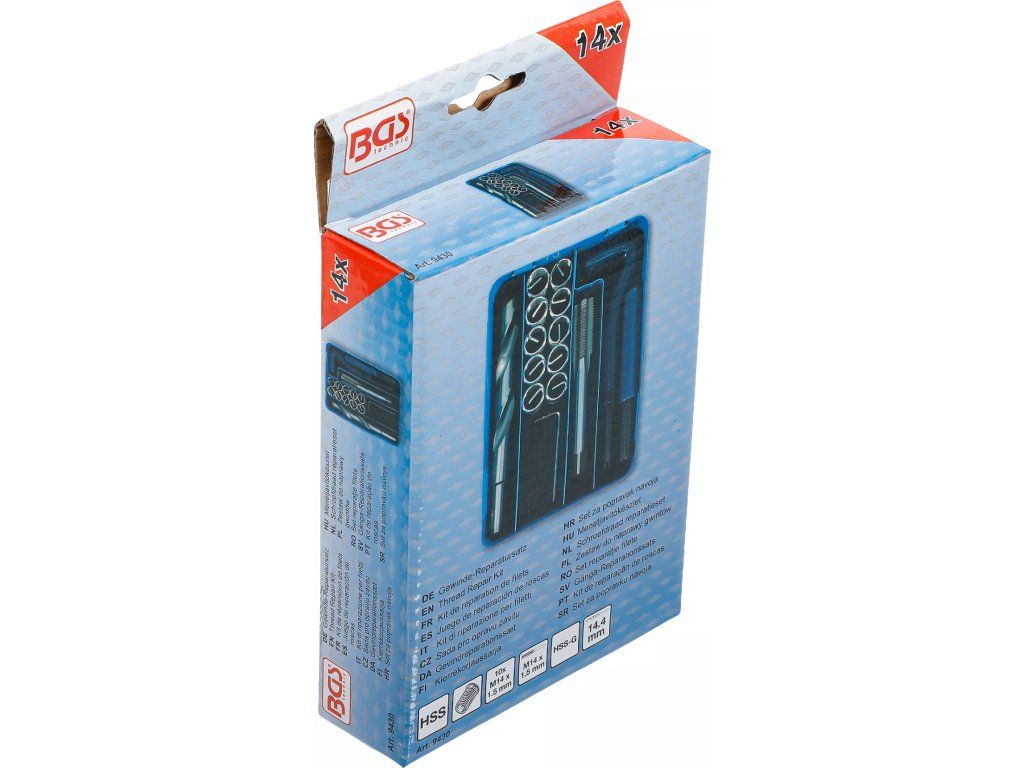 Sada na opravu závitů M14 × 1,5 mm, 14 ks – BGS