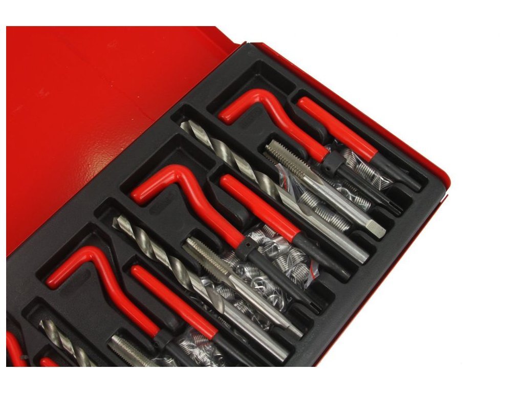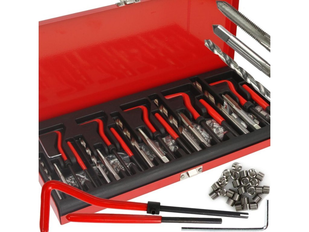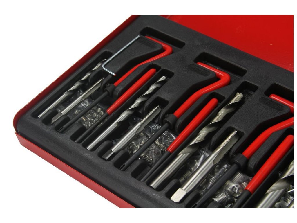 Opravná sada poškozených metrických závitů je určena všude tam, kde při poškození závitu nelze použít šroub jiného rozměru, než byl původní. Dále lze závitové vložky využít pro výztuhu závitů v materiálech s nízkou pevností ve střihu například alu nebo hořčíkové slitiny. Obsahem sady pro každý druh závitu je vrták, závitník, zavádeč, vyrážecí trn a závitové vložky z nerezové oceli.
