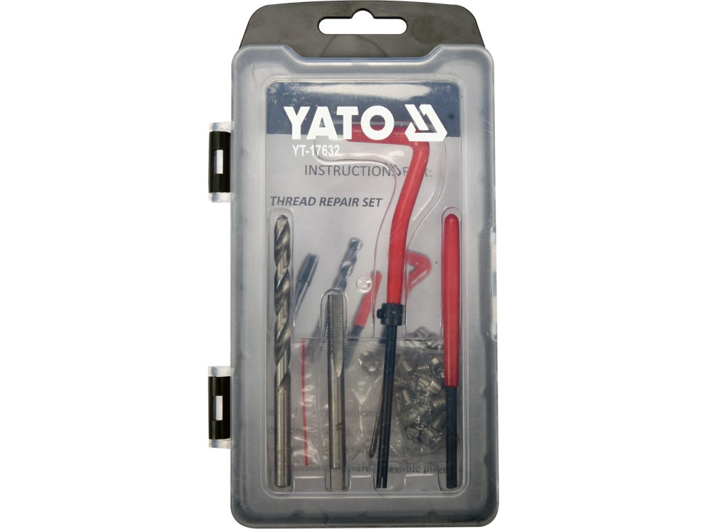 Dále lze závitové vložky využít pro výztuhu závitů v materiálech s nízkou pevností ve střihu např. alu nebo hořčíkové slitiny. Obsah je vrták, závitník, zavádeč, vyrážecí trn a závitové vložky z nerezové oceli.