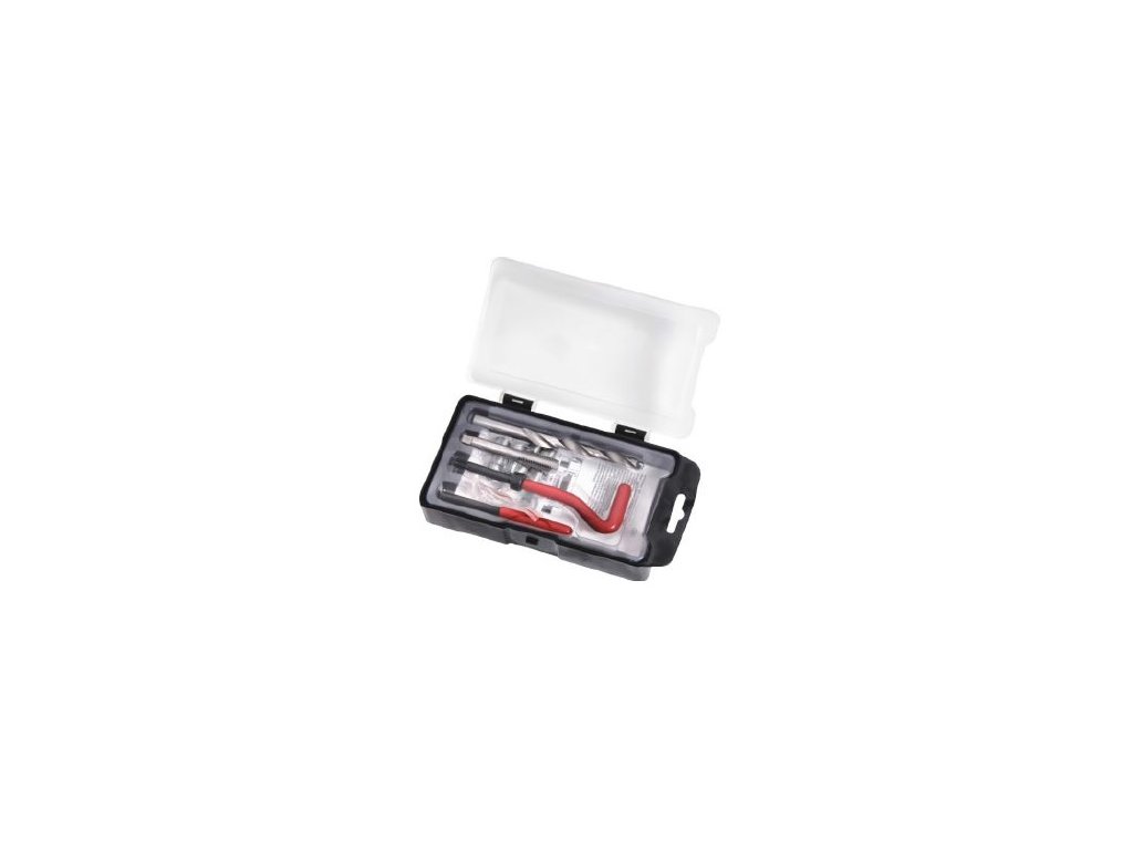 Součástí sady je vrták, závitník, vyrážeč, šroubovák a 10 ks závitových vložek. Vrták a závitník je vyroben z kvalitní oceli HSS 4341. Sada je dodávána v praktickém plastovém obalu.