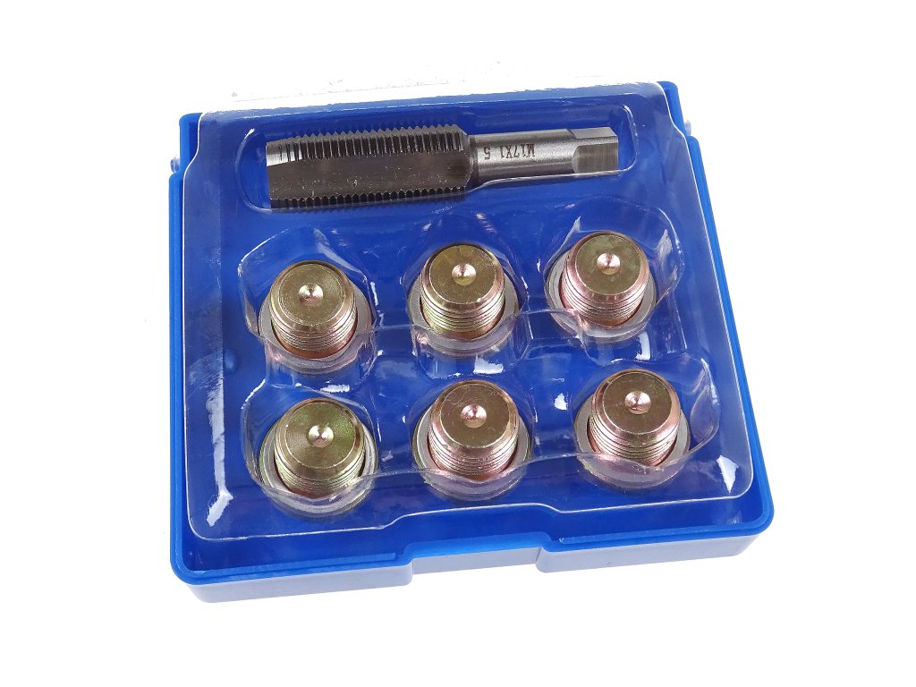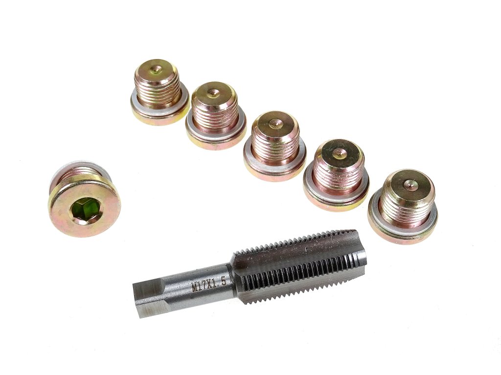 Tato sada s M17×1,5 mm závitníkem je tedy vhodná pro olejové vany, ve kterých byl původně závit M16×1,5 mm. Součástí sady je také šest šroubů M17 (vel. 6 mm, vnitřní šestihran – imbus) s hliníkovými podložkami.