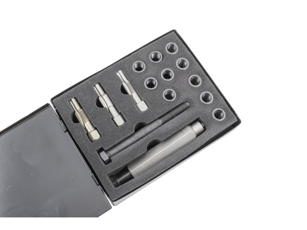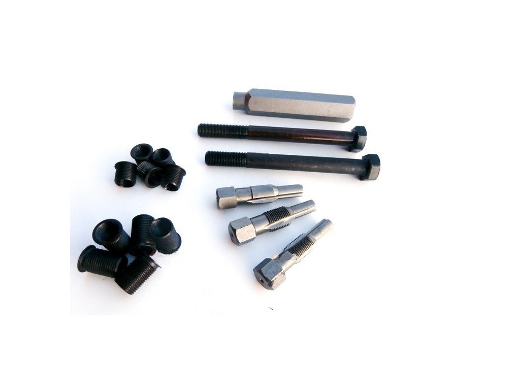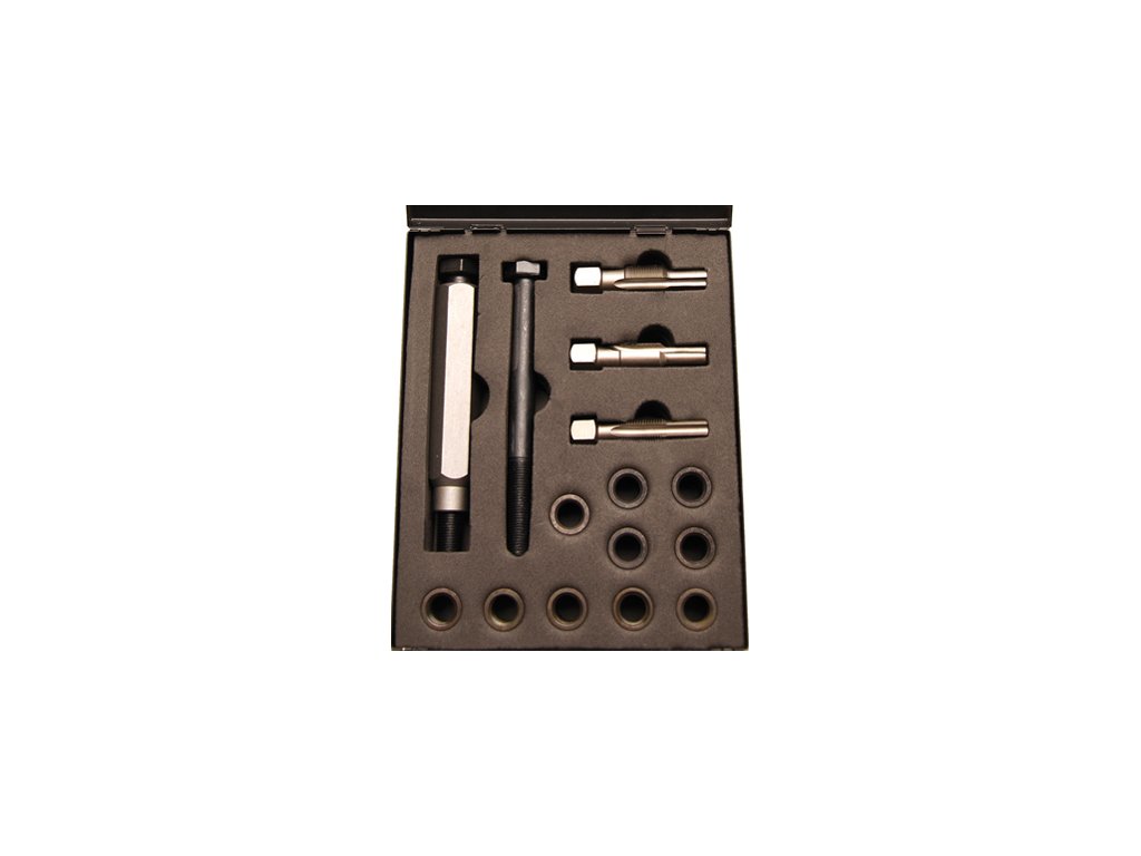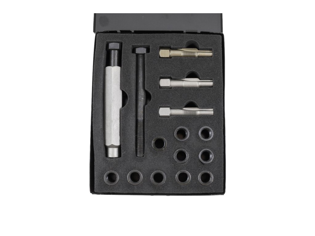Souprava přípravků k opravě poškozených závitů velikosti M10×1,0 pro žhavící svíčky („žhavičky“) v dieselových motorech. Součástí je vše potřebné pro odvrtání poškozeného závitu, závitník pro vyřezání závitu pro vložku, a sada vložek s vnitřním závitem M10×1,0 o délkách 12 a 19 mm.