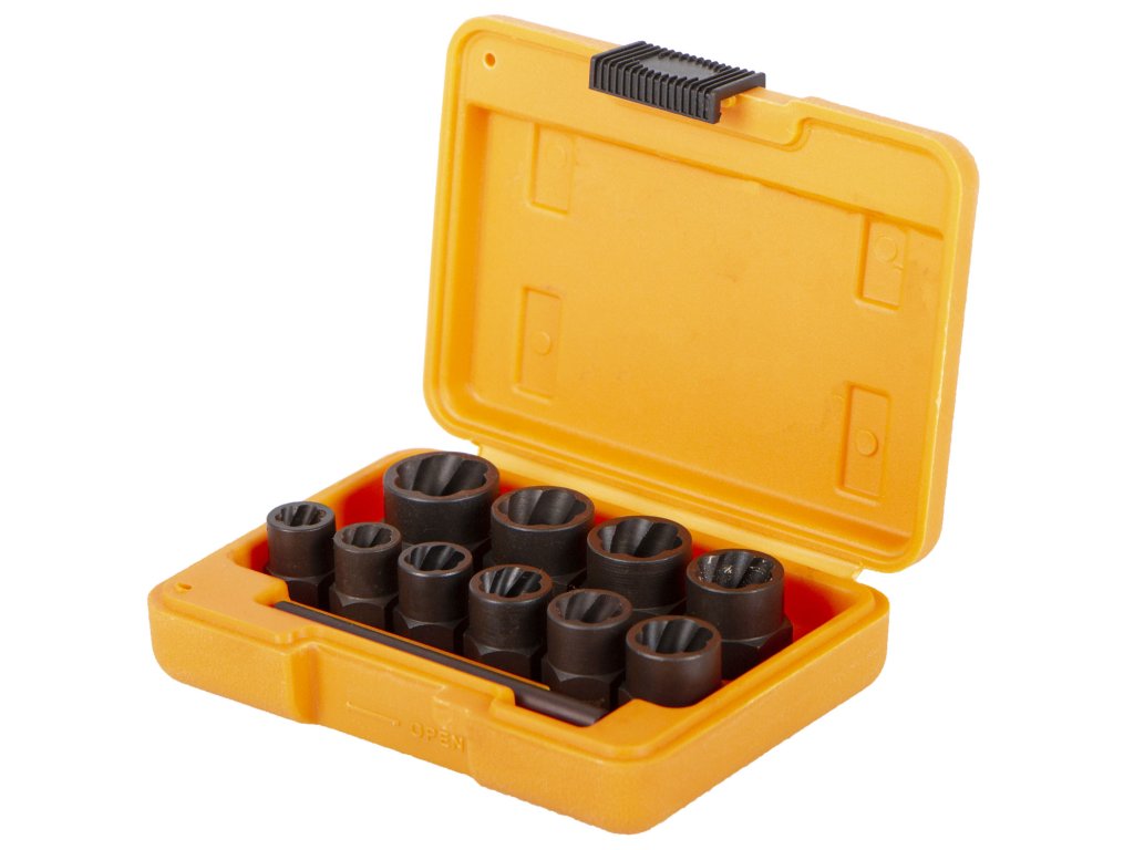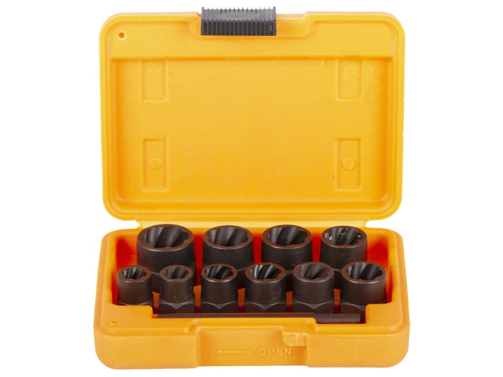 Sada 11 ks speciálních nástrčných hlavic 3/8" na povolení poškozených šroubů a matic.