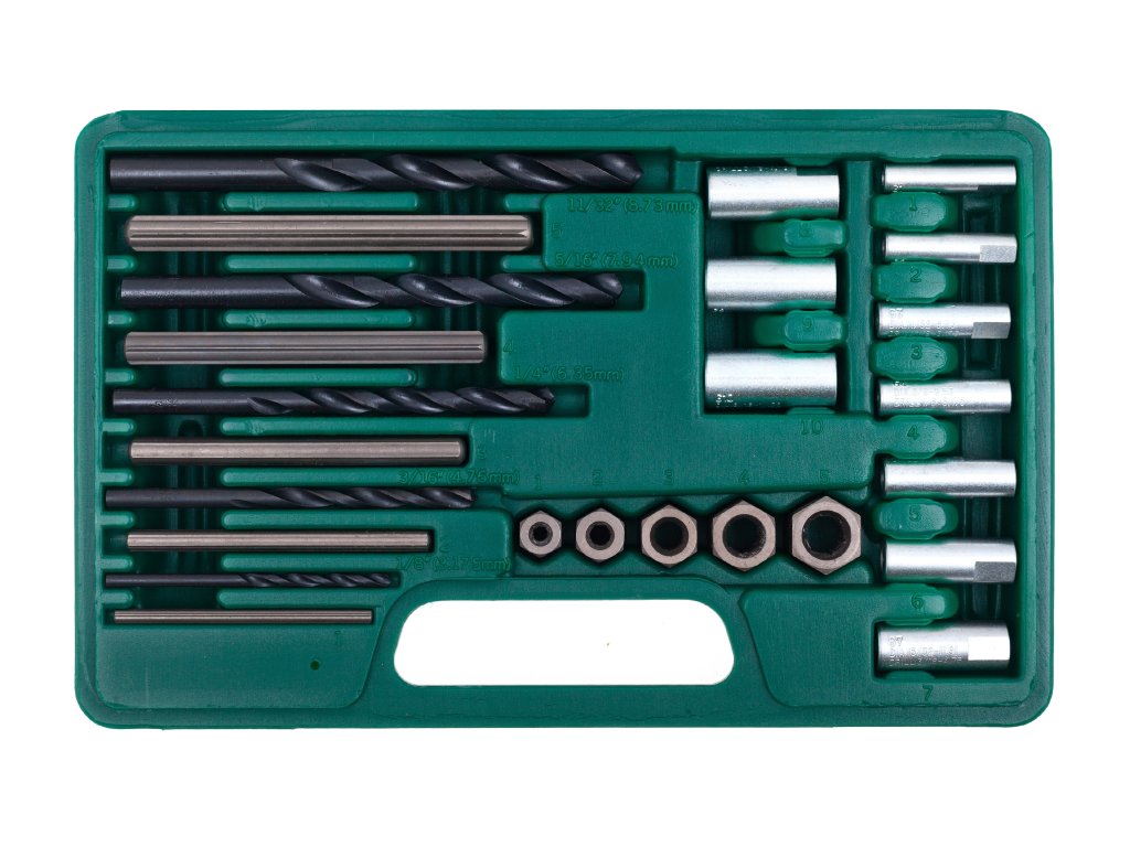 Souprava umožňuje vyšroubovat zlomené šrouby a štefty ve velikostech od M5 do M16 bez ohledu na to, zda zbývající prvek vyčnívá nad povrch nebo je uvnitř otvoru.