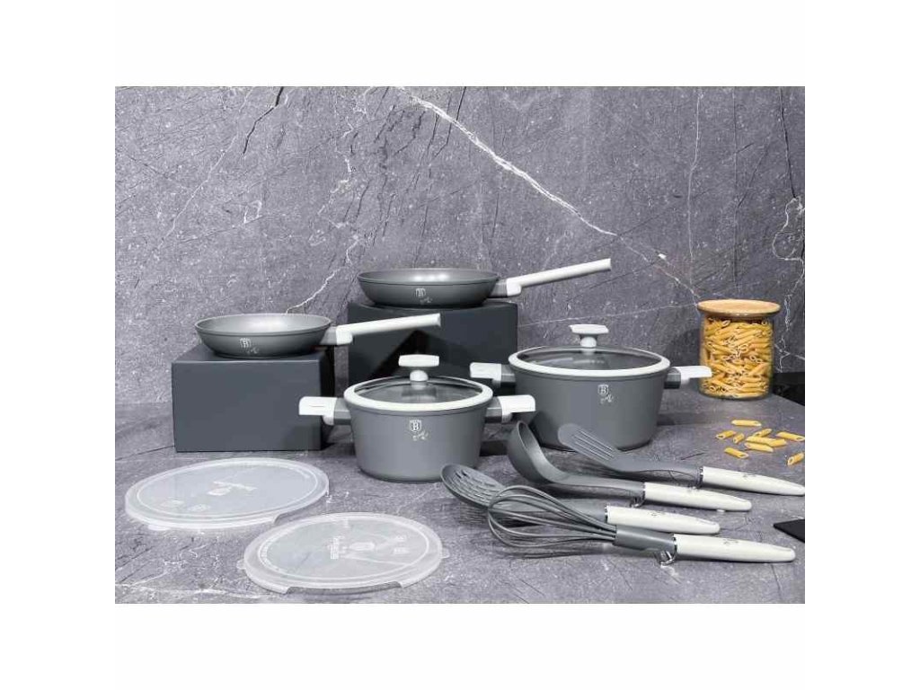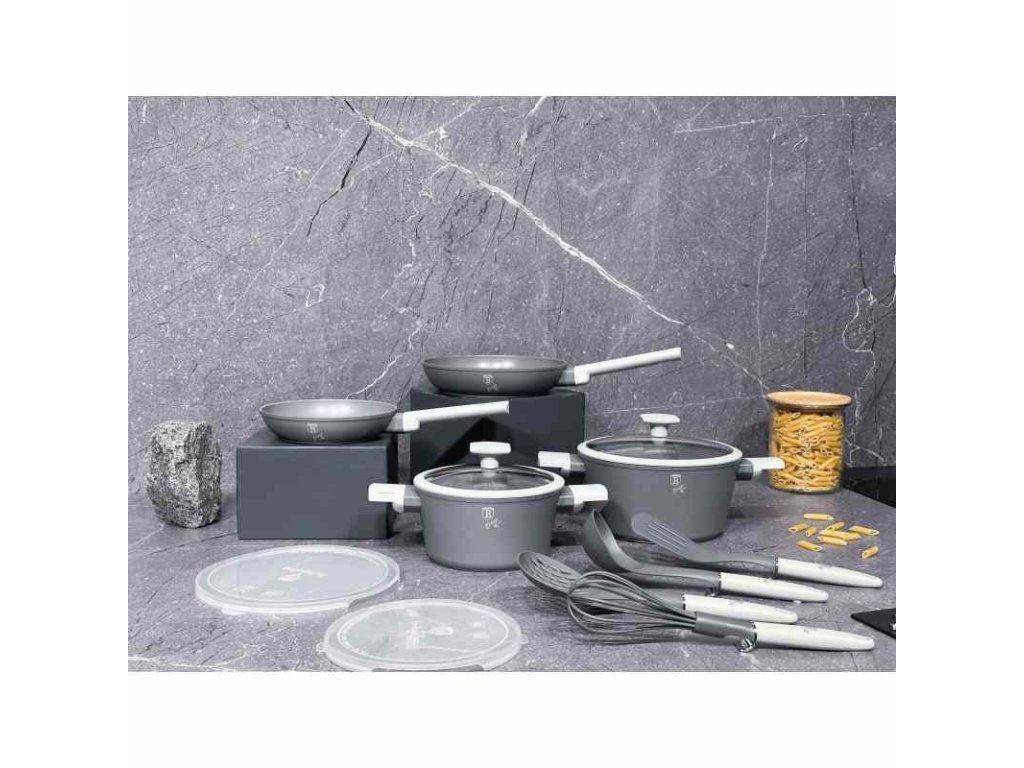 Univerzální nádobí s titanovým povrchem v šedém designu Aspen Collection. Moderní minimalistický design nádobí vás jistě zaujme hned na první pohled. Matný šedý povrch nádobí je navíc velmi praktický při dlouhodobém používání. Vnitřní vrstva je potažena 3vrstvým titanovým povrchem, který je charakteristický svou dokonalou nepřilnavostí. Připravované pokrmy se tak nepřipalují a díky tomu se nádobí velmi snadno čistí. Zároveň je vhodný pro zdravé vaření s minimem tuku nebo oleje, v závislosti na použitých surovinách klidně i bez jedinné kapky tuku. Titanový povrch, stejně jako ostatní použité materiály, neobsahují žádné škodlivé látky, vaření je tak zcela zdravé a hygienické. Zesílené Turbo indukční dno z nerezové oceli je kompatibilní se všemi druhy varných desek a spolehlivě funguje také na indukci. Jistě oceníte tepelně izolovanou rukojeť, která se při vaření nezahřívá a zůstává stále chladná. Nádobí Aspen je vhodná pro každodenní vaření, dušení i smažení, perfektně bude vypadat i při servírování hotových jídel přímo na váš stůl.- vnitřní i vnější vrstva neobsahují žádné škodliviny, výsledné pokrmy tak neztrácí vařením svoje vitamíny