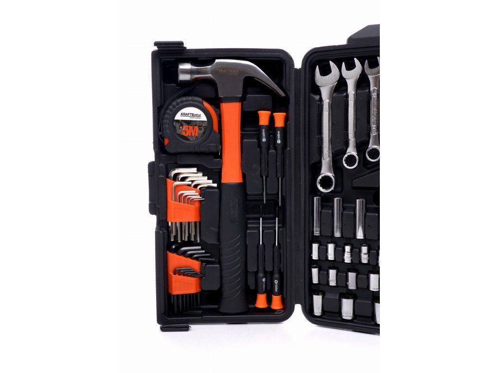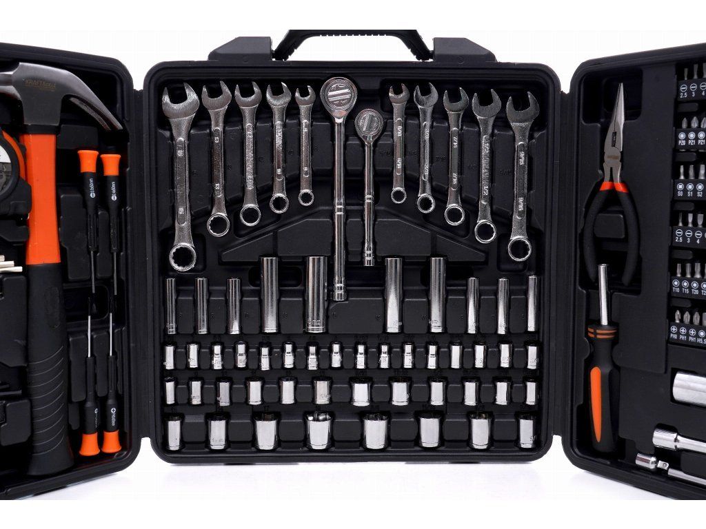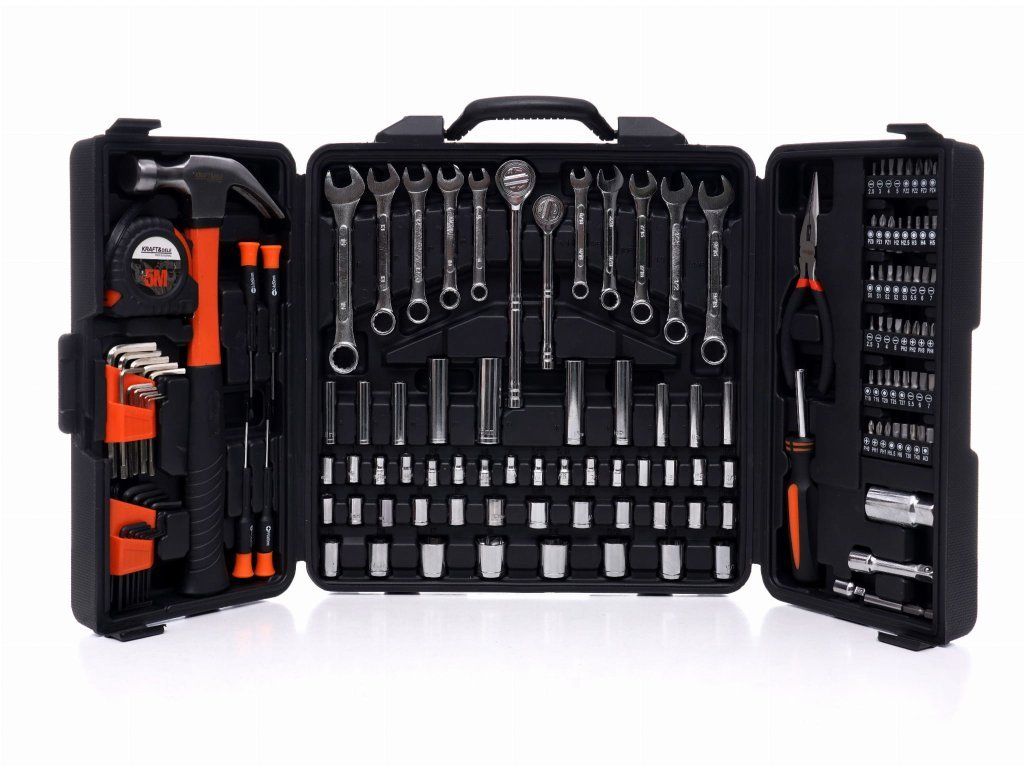 Univerzální sada nářadí KRAFT&DELE obsahuje 140 kvalitních nástrojů uložených v přehledném kufru. Díky promyšlenému uspořádání je každý nástroj snadno dostupný a práce tak probíhá rychleji a efektivněji.