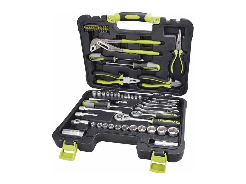 Materiál: CrV- 2x ráčna 1/4”+3/8” <BR/>- nástrčné hlavice 1/4”: 4-4,5-5-5,5-6-7-8-9-10-11-12-13mm <BR/>- nástrčné hlavice 3/8”: 10-11-12-13-14-15-17-19-21-22-24mm <BR/>- nástrčné hlavice torx <BR/>- klíč na svíčky 16+21mm <BR/>-prodlužovací nástavec: 1/4”x75mm, 3/8”x75mm, 3/8”x150mm <BR/>- siko kleště 250mm, kombinované kleště 180mm <BR/>- boční štípačky 160mm, kleště půkulaté přímé 160mm <BR/>- univerzál kardan 1/4”+3/8” <BR/>- klíčeotevřené 6x7, 8x9, 10x11, 12x13, 14x15mm <BR/>- bity SL3-4-5-6, PH0-1-2-2-3, HEX3-4-5-6, T10-15-20-25-30-40 <BR/>- držák bitů <BR/>- šroubovák plochý 5x100mm + křížévý 6x100mmDoplňkové parametry