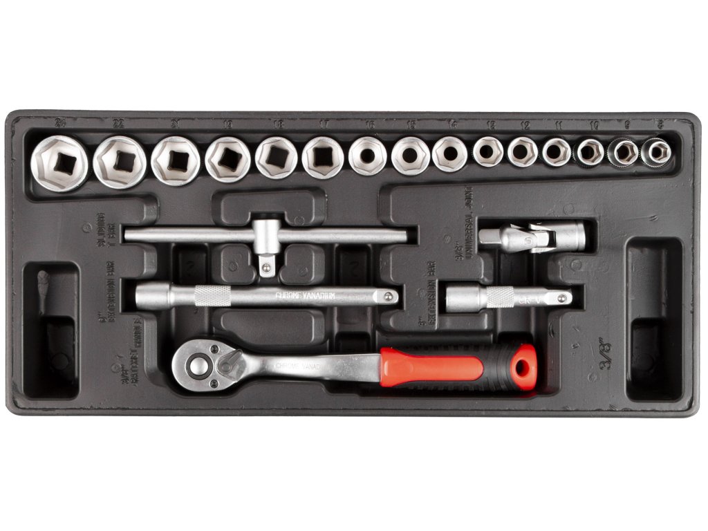 V sadách nářadí naleznete gola sadu 1/4", 3/8" i 1/2", nástrčné klíče, kleště, kladivo a paličku, šroubováky (klasické, elektrikářské i hodinářské), IMBUSy, očkoploché klíče, měřidla a např. rašple a pilníky.