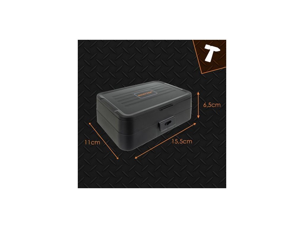 108 ks bitů šroubováků CRV: (PH0000 až PH2, ploché: SL1 až SL4, šestihranné (Hex): H0,7 až H6,0, objímky: M2,5 až M5,5, G3,8, G4,5, Torx a Torx s otvorem: T1 až T20H, trojkřídlé, pentalobe, trojúhelníkové, čtvercové, Pozidriv, tvar U atd., vyhazovače SIM karet: SIM0,8, SIM1,0, distanční bity: 2,0, 2,5)