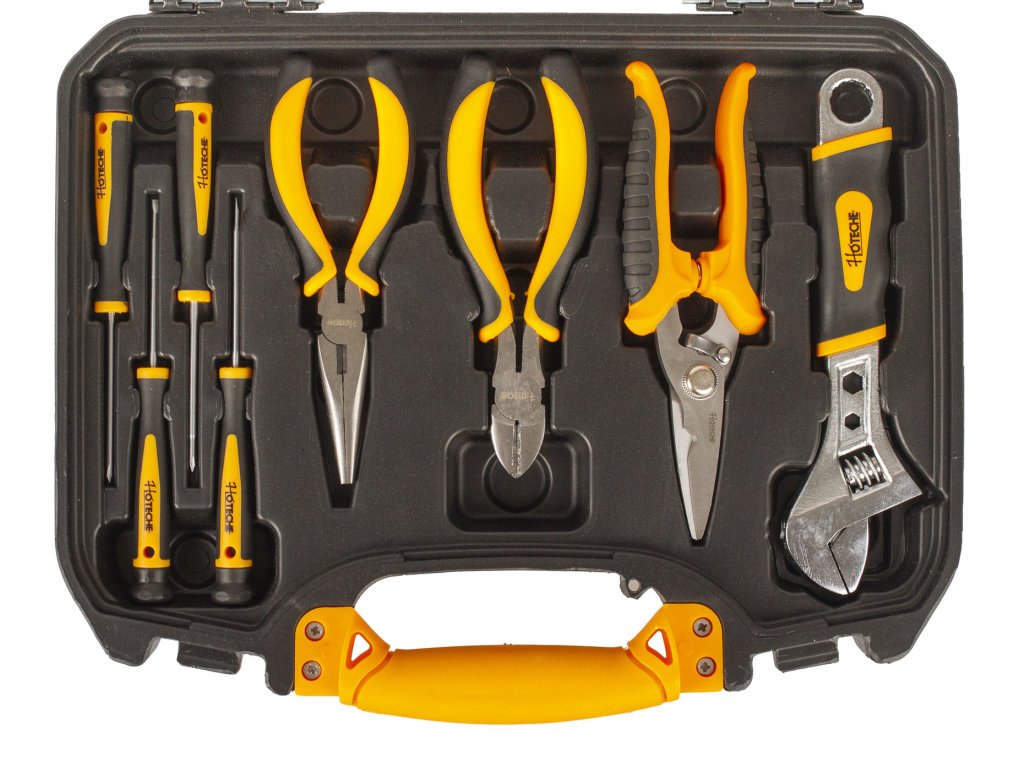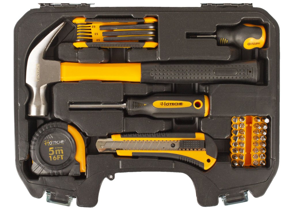 Sada základního nářadí s v plastovém kufru od značky Hoteche by neměla chybět v žádné domácnosti.