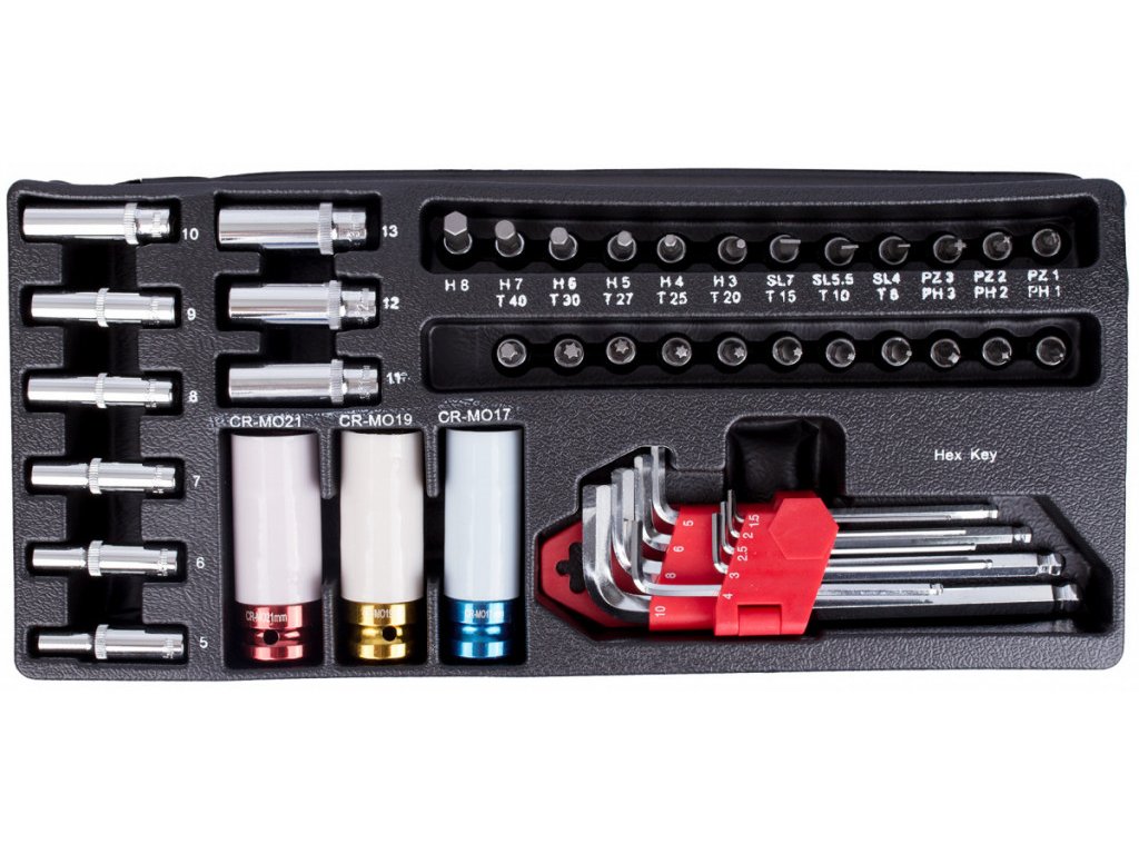 Sada nástrčných a imbus klíčů ve výplni do dílenského vozíku, 44ks - AH100651