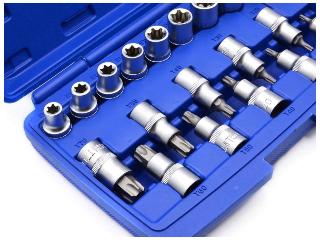 - hlavice 1/2" s bity TORX: T20, T25, T27, T30, T40, T45, T50, T55, T60, T70