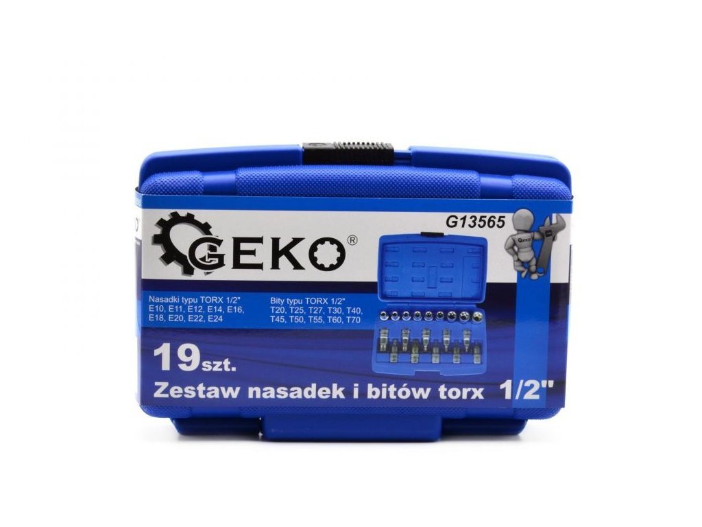 Sada nástrčných hlavic a bitů TORX 1/2", 19ks GEKO