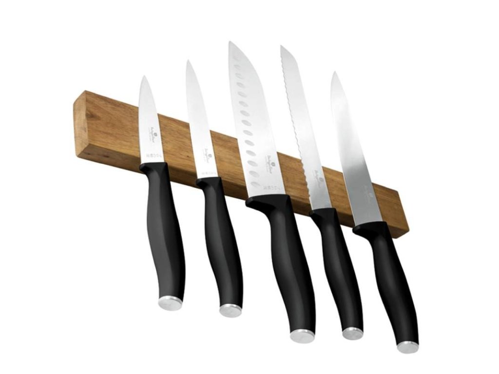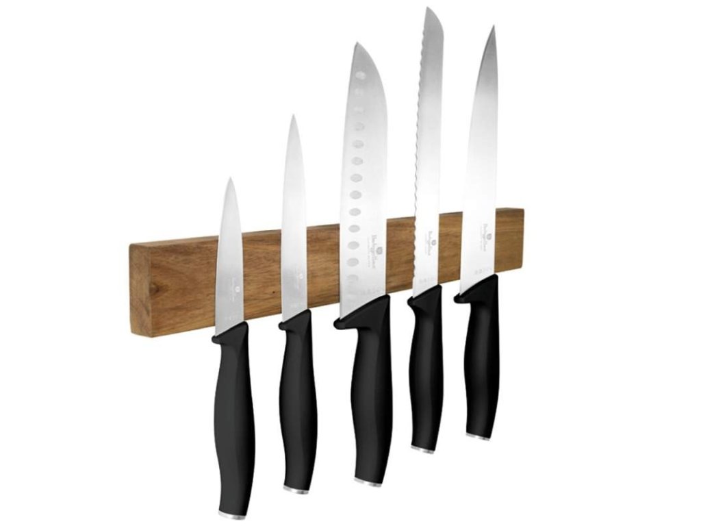 Sada nožů s magnetickým držákem z akátového dřeva 6 ks Matte Black Collection